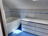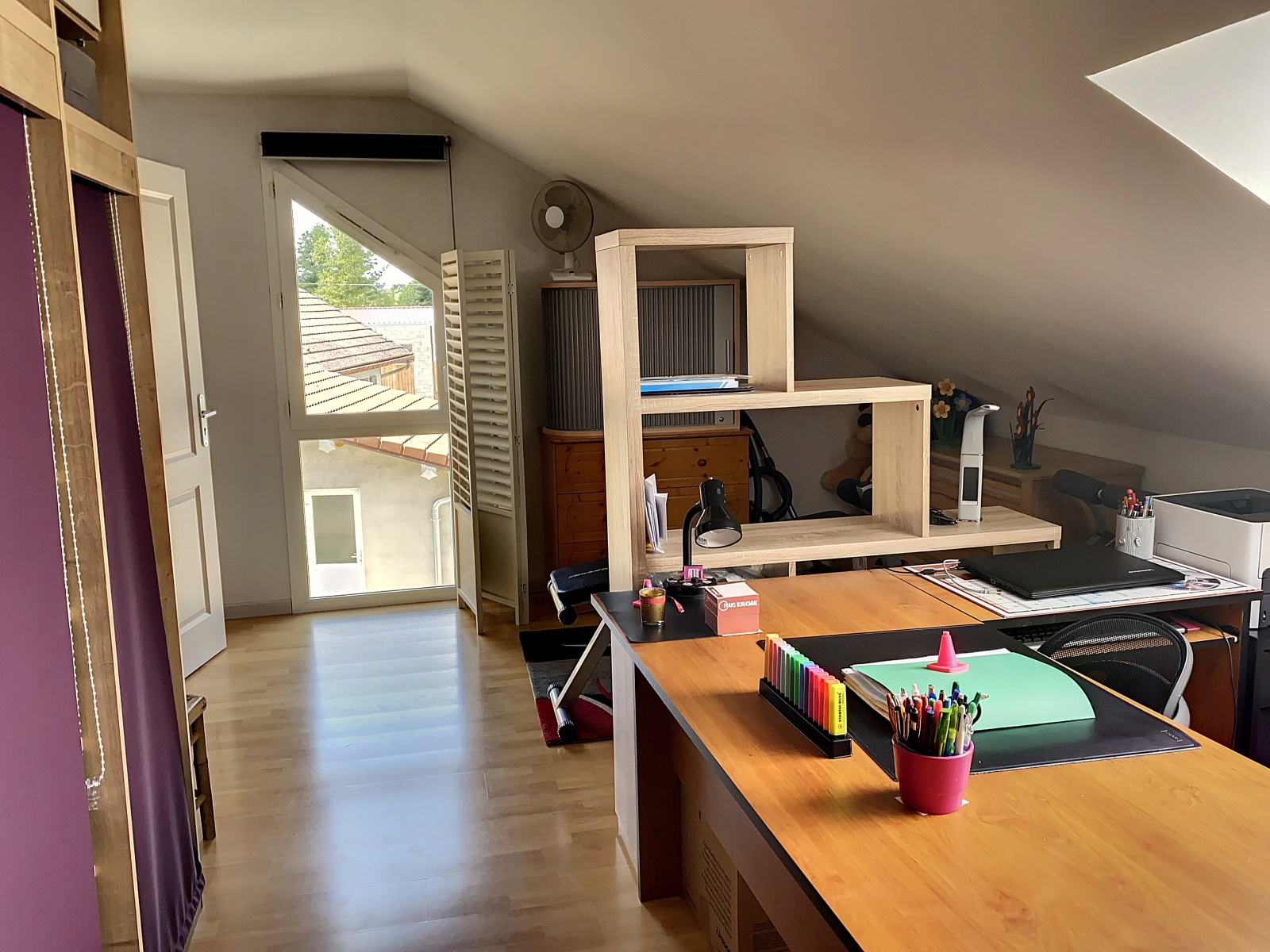 A l'étage : mezzanine, 3 chambres dont une avec dressing, salle de bains avec wc.