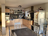 Au rez-de-chaussée : entrée sur salle à manger / salon ouverte sur cuisine équipée (48 m2 env), une chambre (10 m2 env), salle d'eau (6 m2 env), wc.