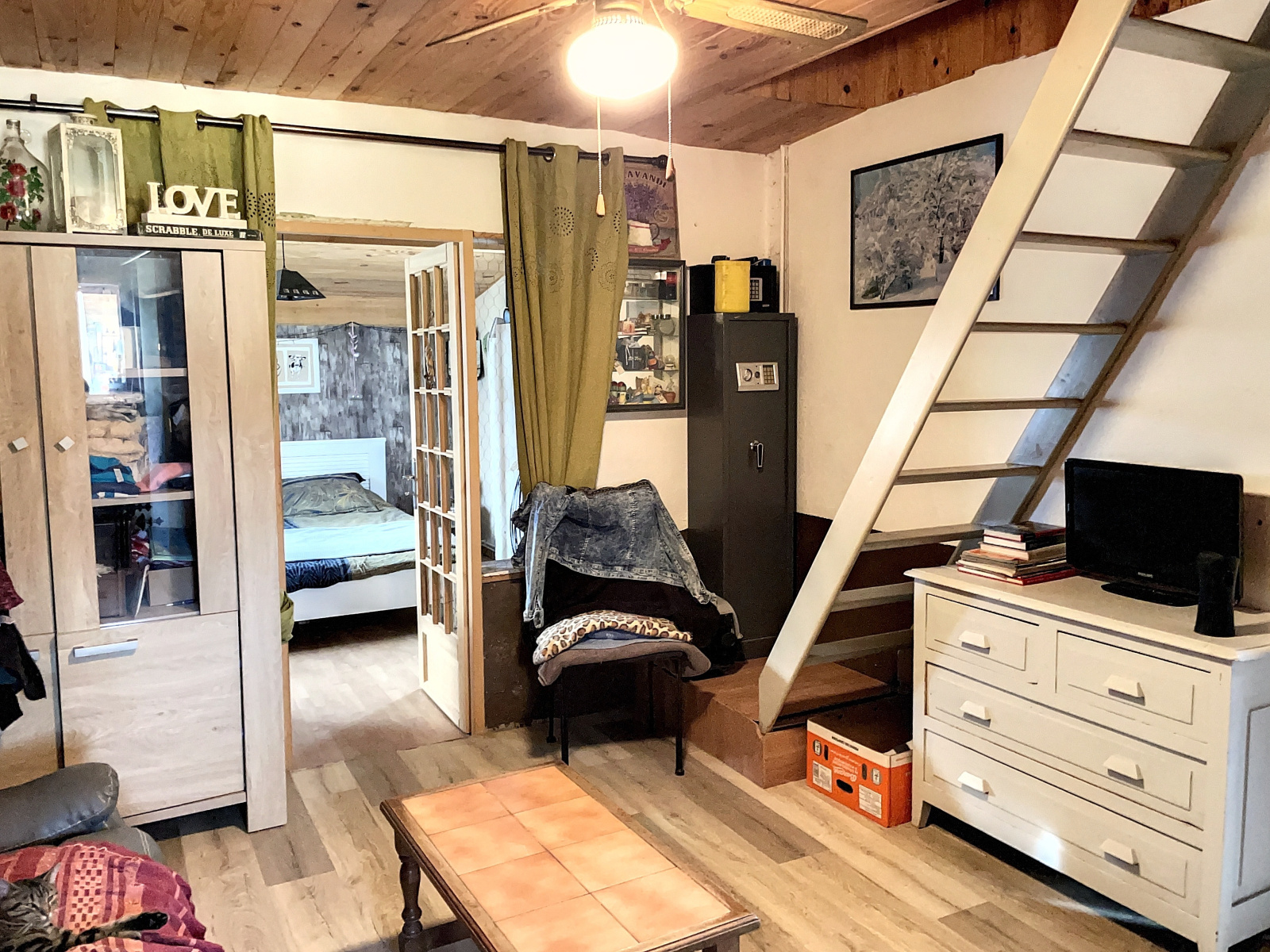Petit grenier mansardé au-dessus.