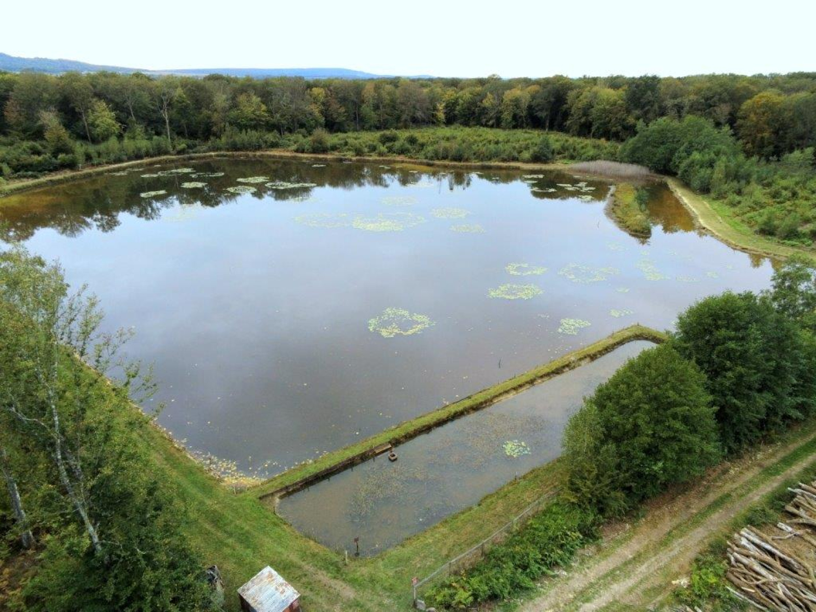 Terrain d'une surface de 3 hectares 02 ares 05 centiares avec étang d'une contenance de 2 hectares 60 ares, un bassin d'environ 5 ares.