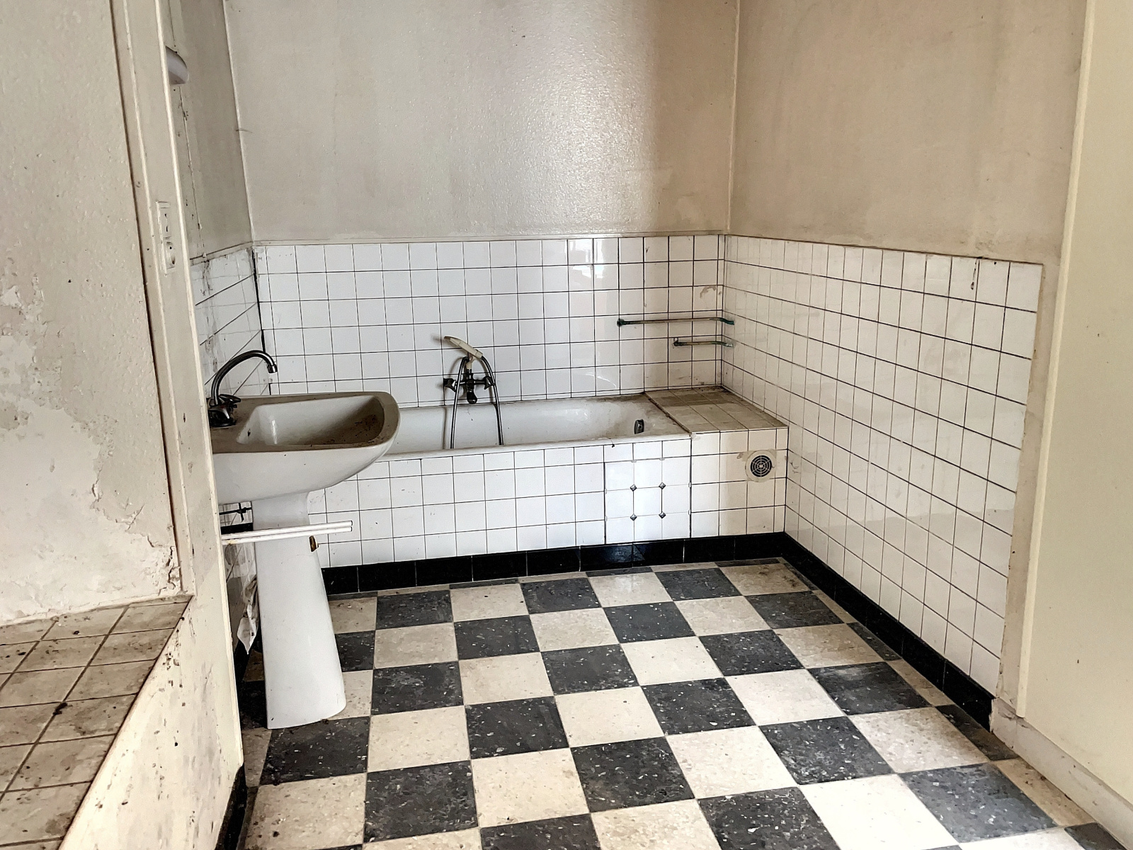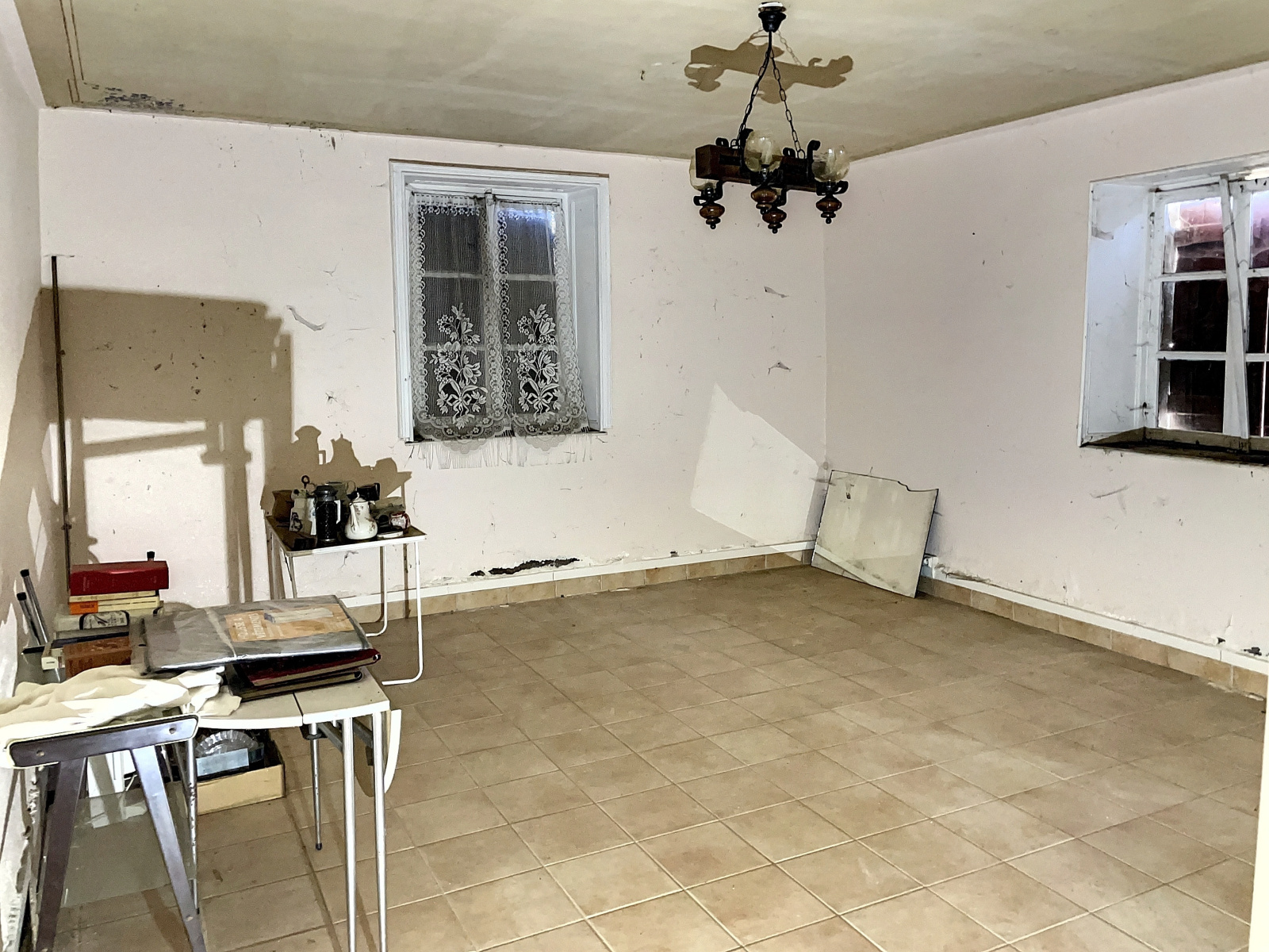 Au rez-de-chaussée : une grande entrée (25 m2 env) avec cheminée en pierre, une pièce (18 m2 env) avec toilette, cuisine (14 m2 env) avec coin salle de bains (8 m2 env), une chambre (25 m2 env).