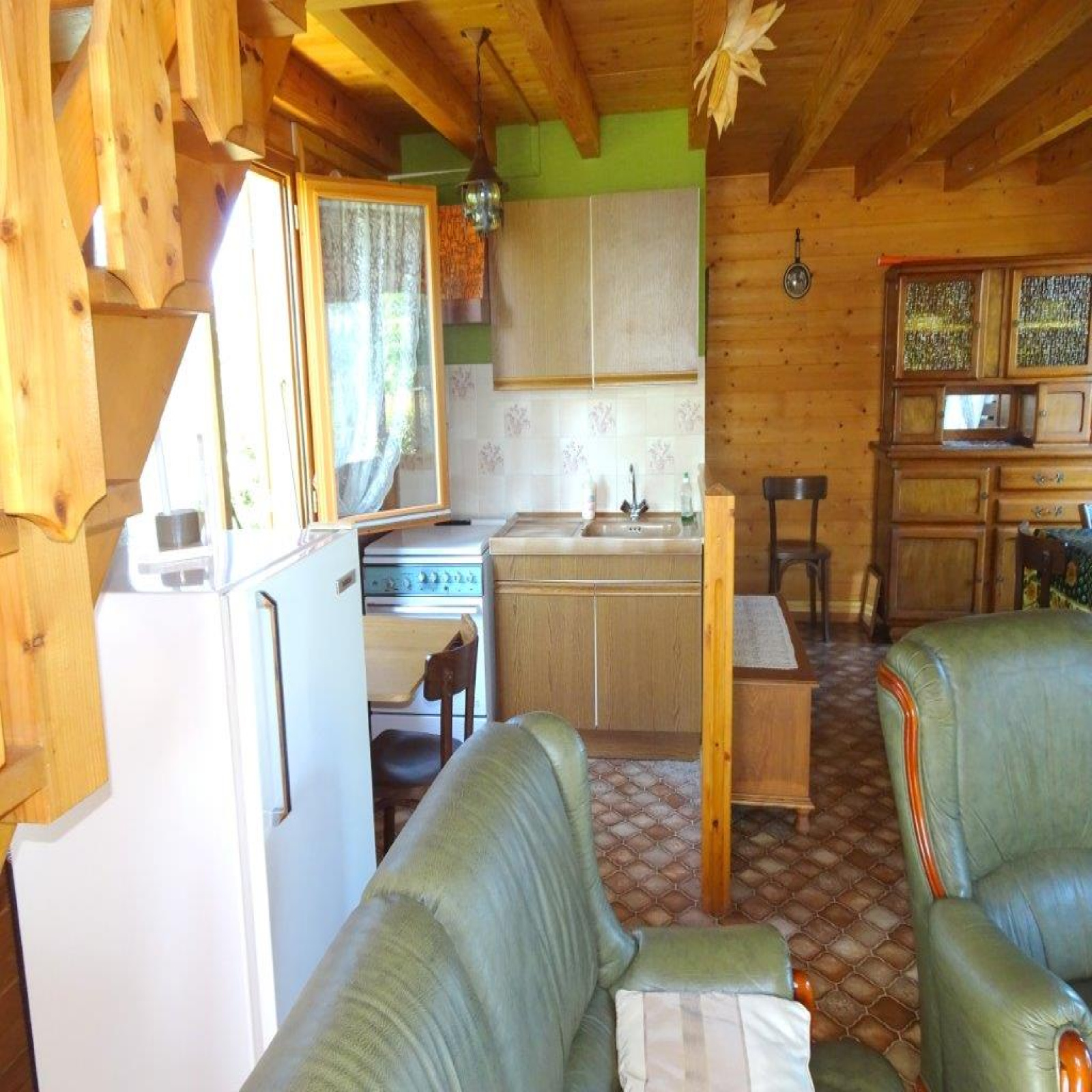 Maisonnette en bois, type chalet, sur vide sanitaire, terrain en partie clos de 39 a 90 ca comprenant :