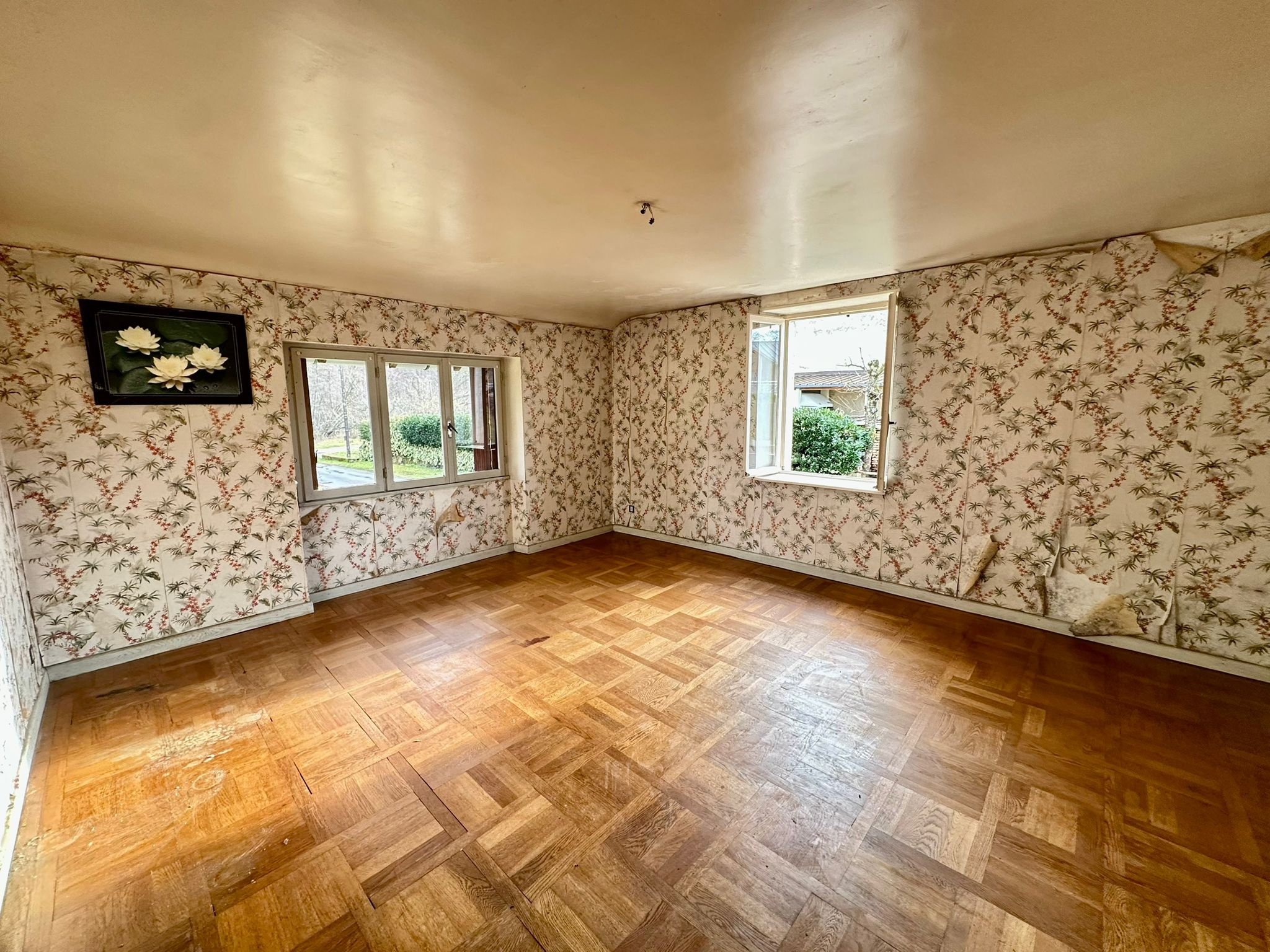 Au rez-de-chaussée : entrée, cuisine avec insert, salon avec poêle à bois/séjour, 1 chambre, salle de bains, w.c.