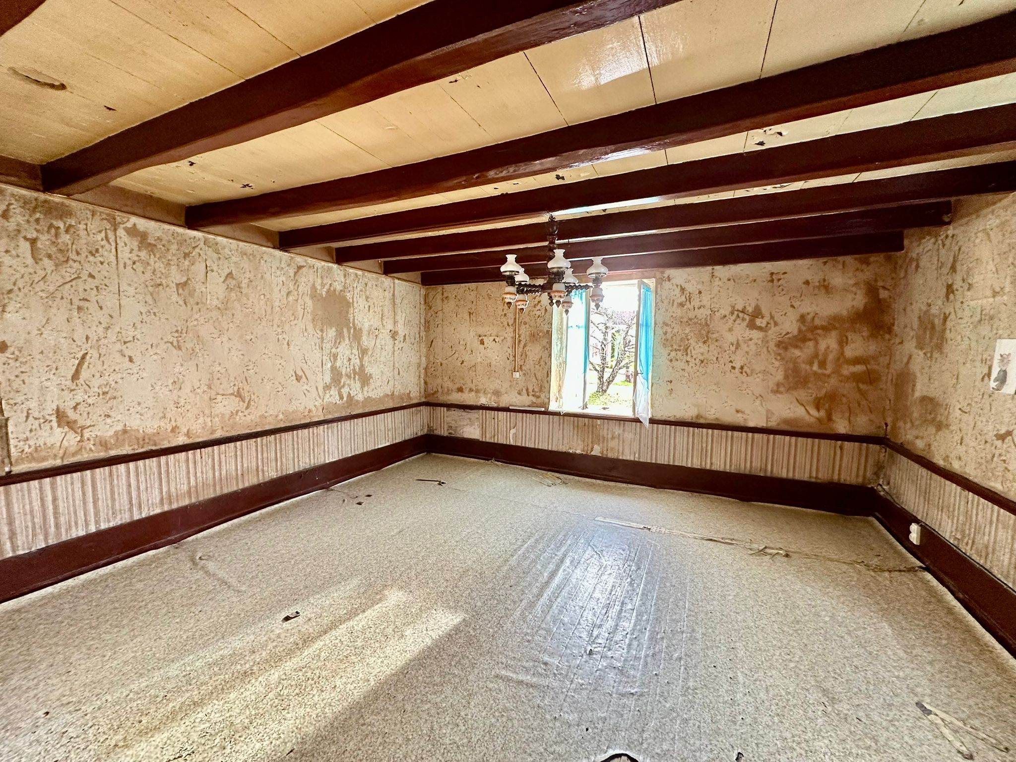 A l'étage : 2 chambres en enfilade dont une avec poêle à bois.