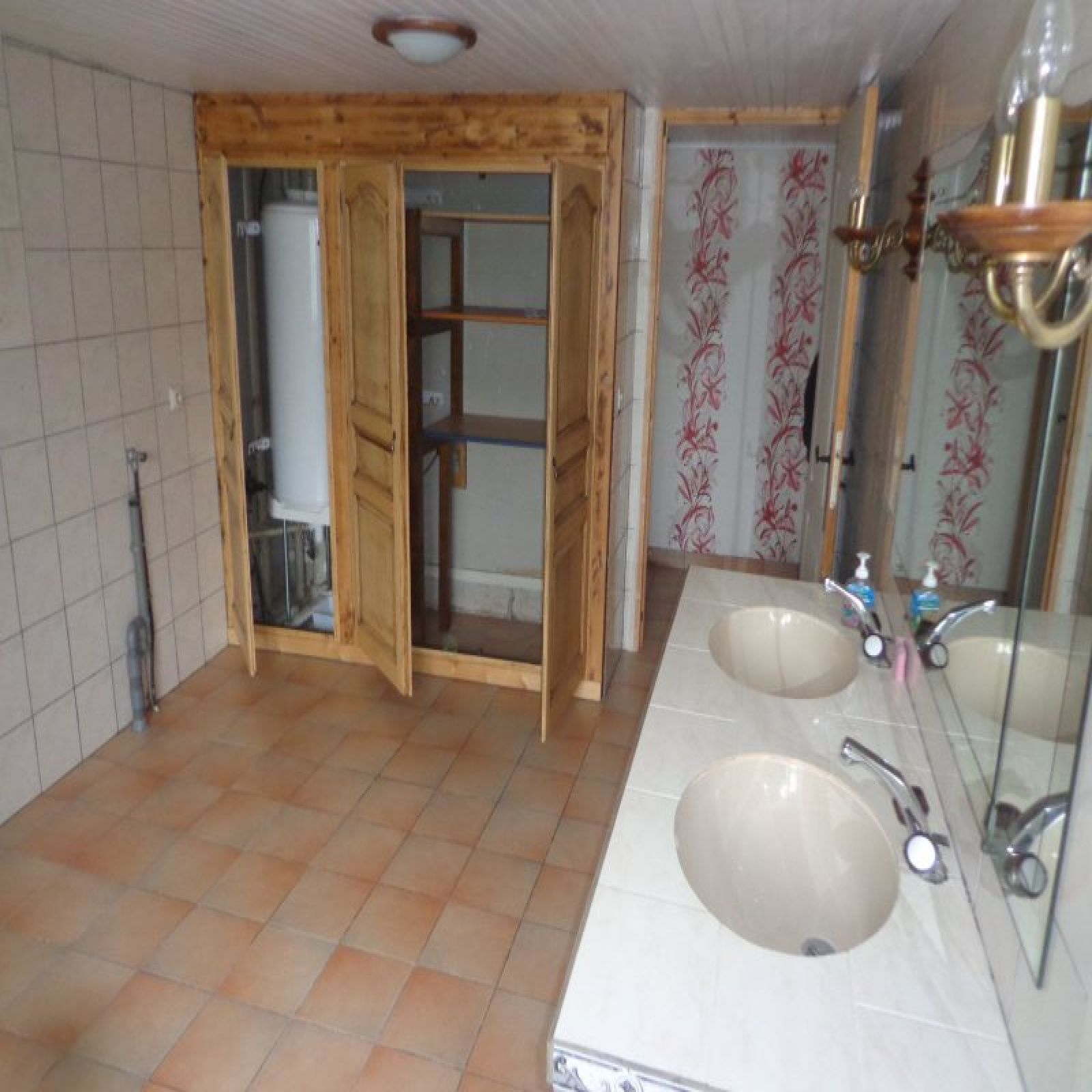 A l'étage : salon ou bureau en enfilade avec une chambre, une chambre avec 2 placards, 2 autres chambres avec placard, wc avec lave-mains.
