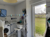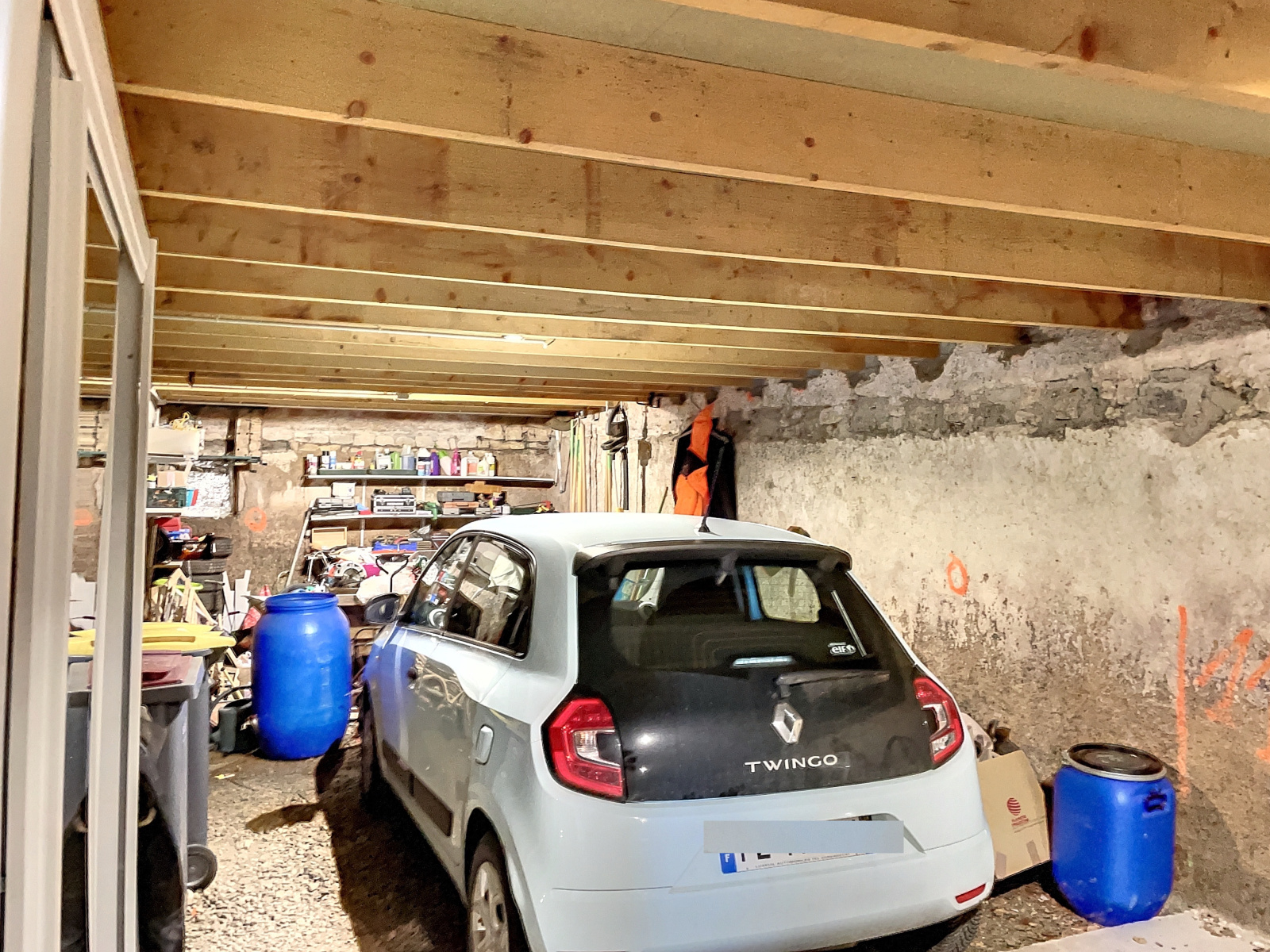 Garage avec porte électrique (61 m2 env, 14 m * 4 m), cave / cellier (38 m2 env) avec accès extérieur arrière.