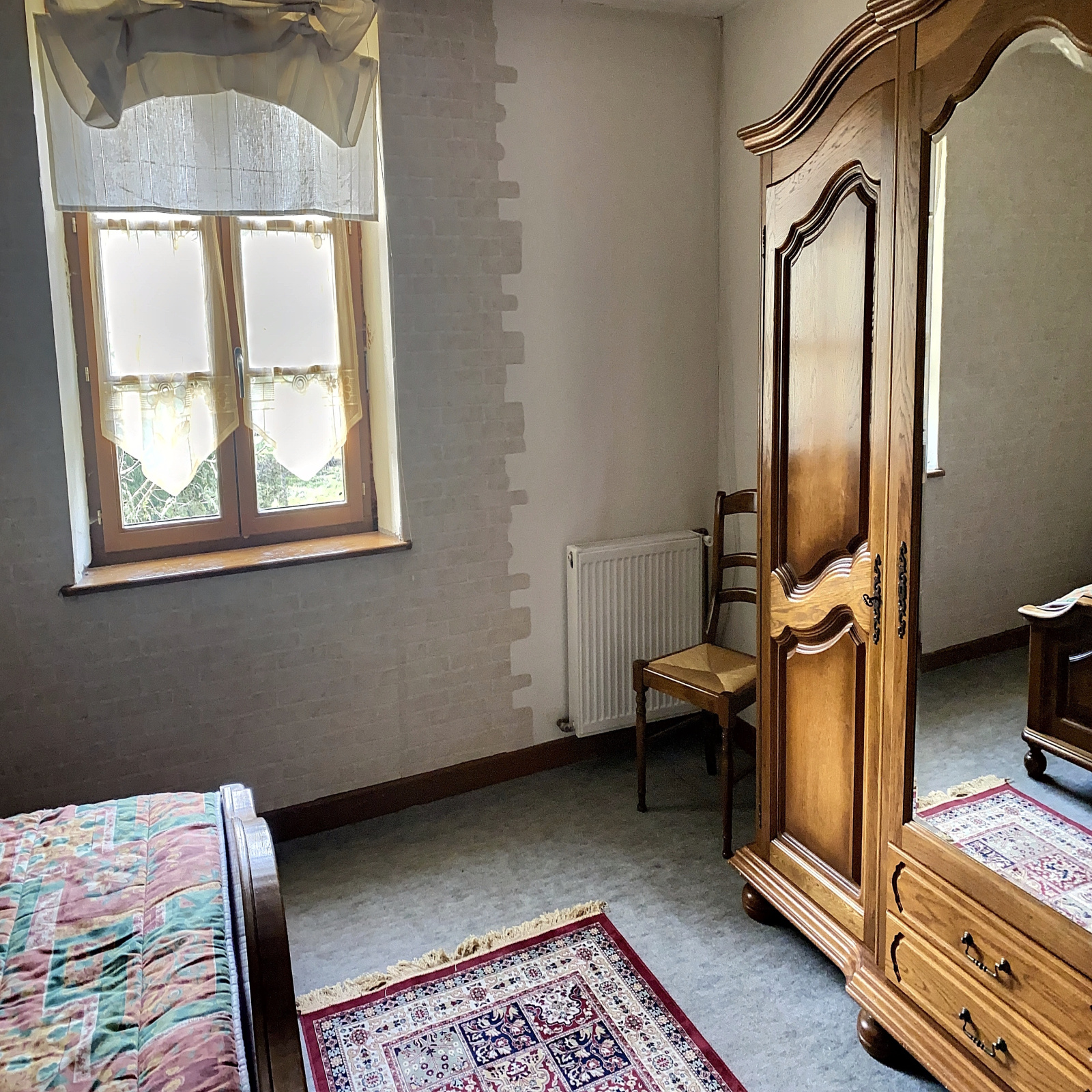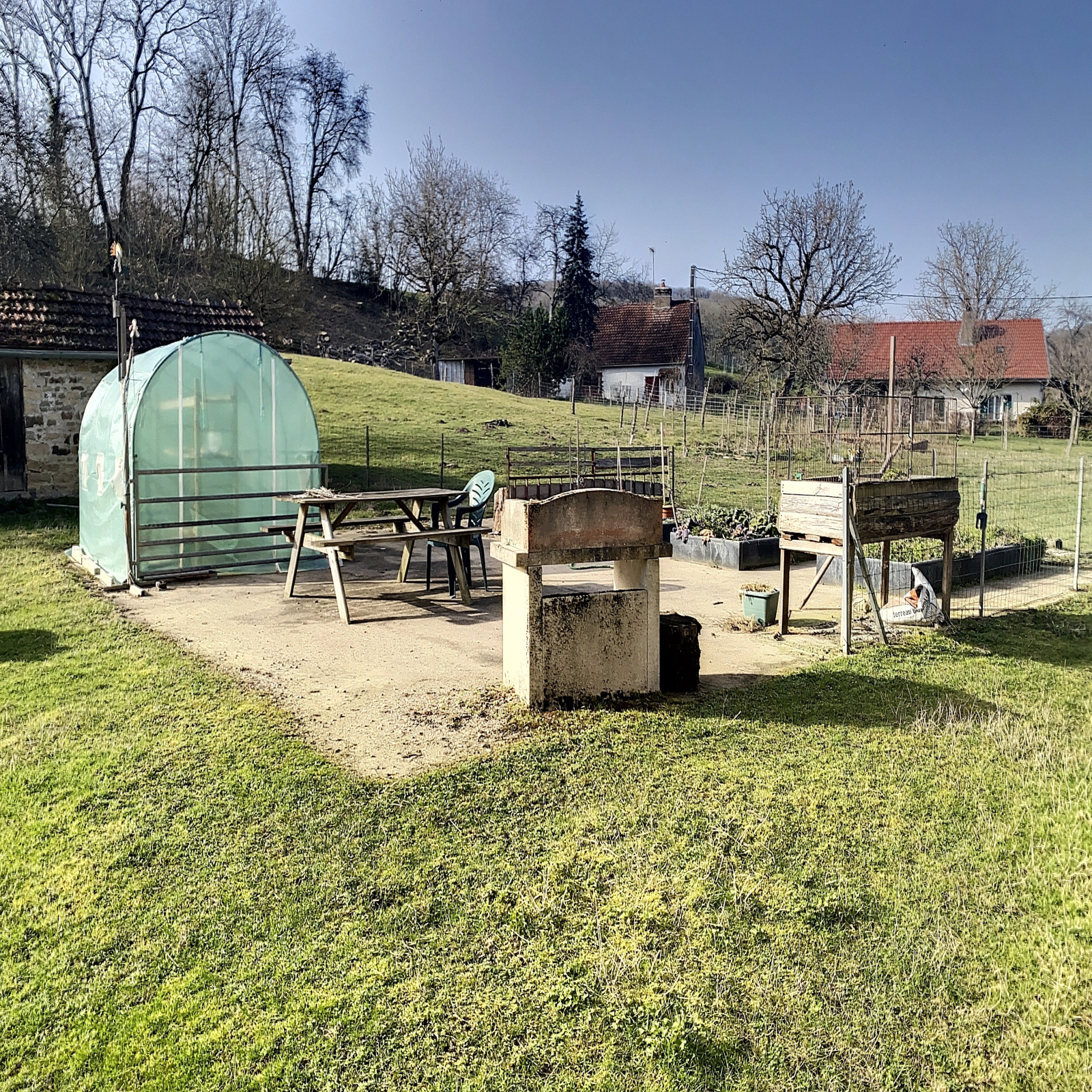 Jolie Fermette de 1904 à fort potentiel sur terrain de 44 ares à l’arrière et 27 ares dans le village (+ possibilité de louer 2 ha à proximité), elle comprend :