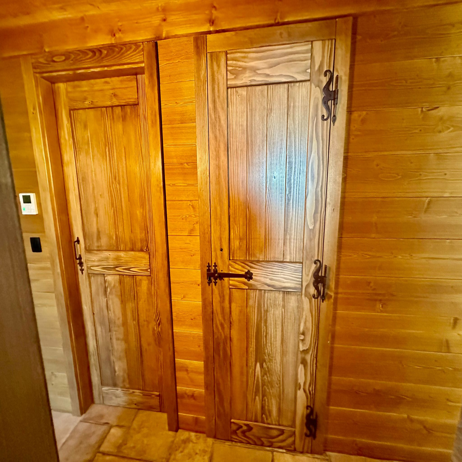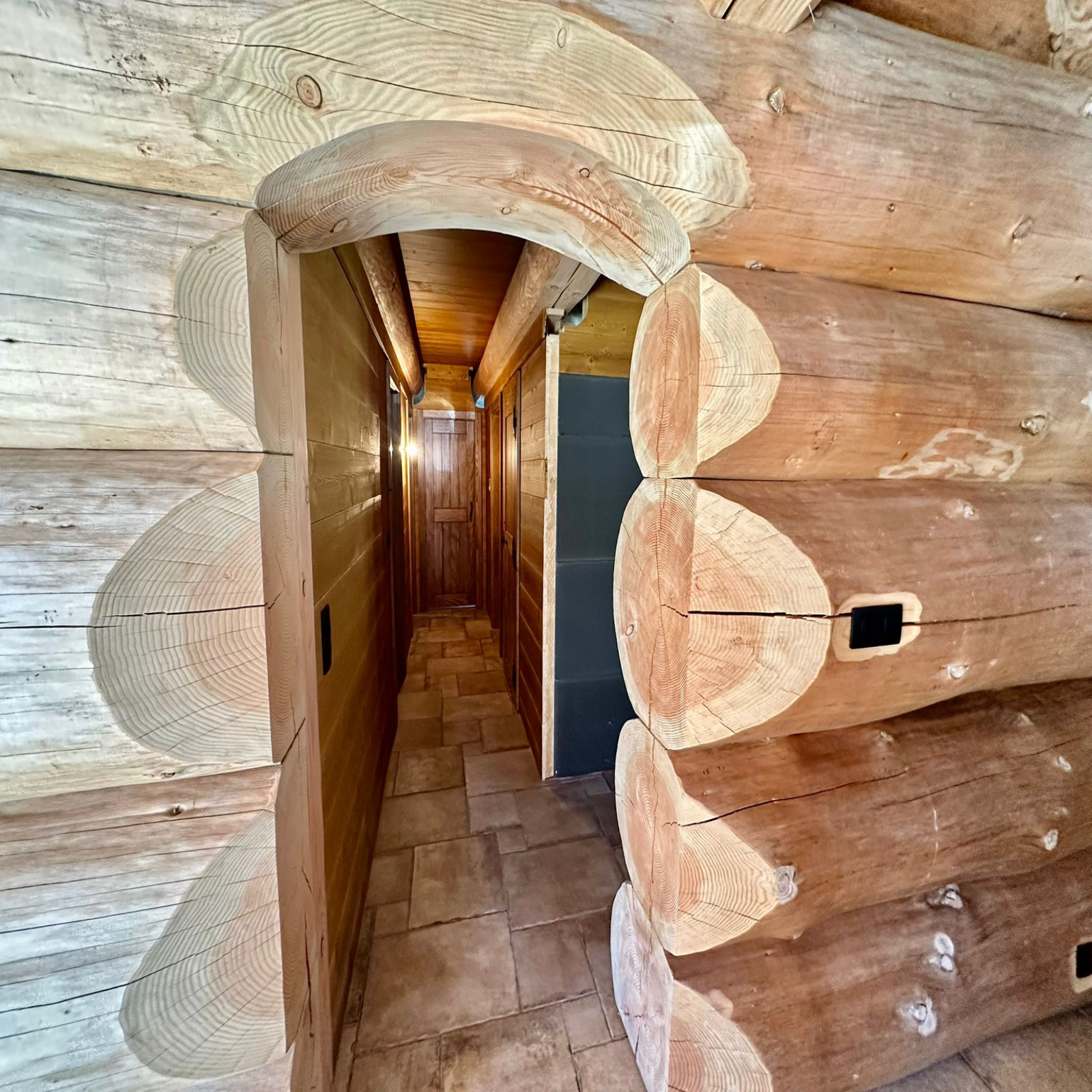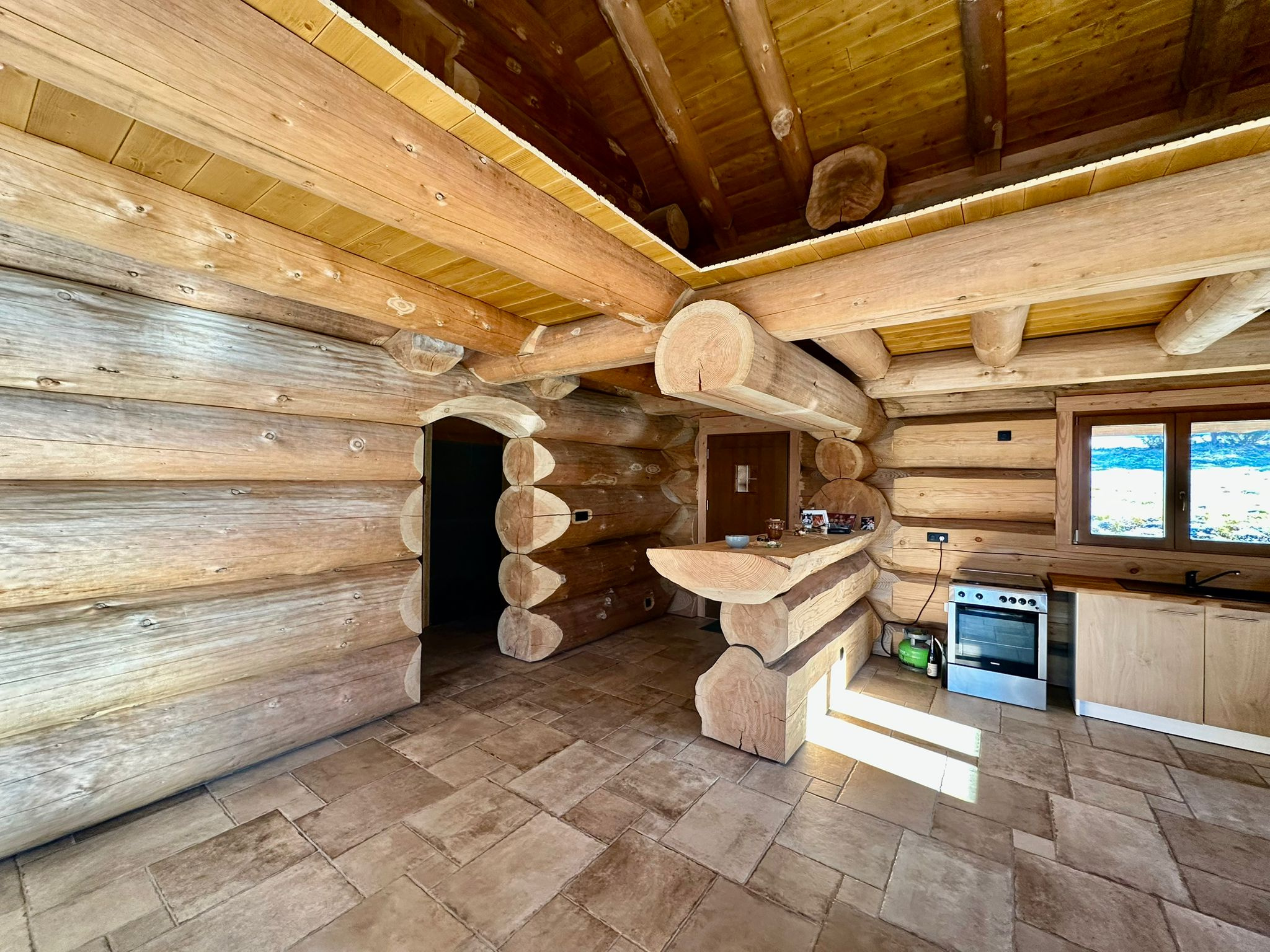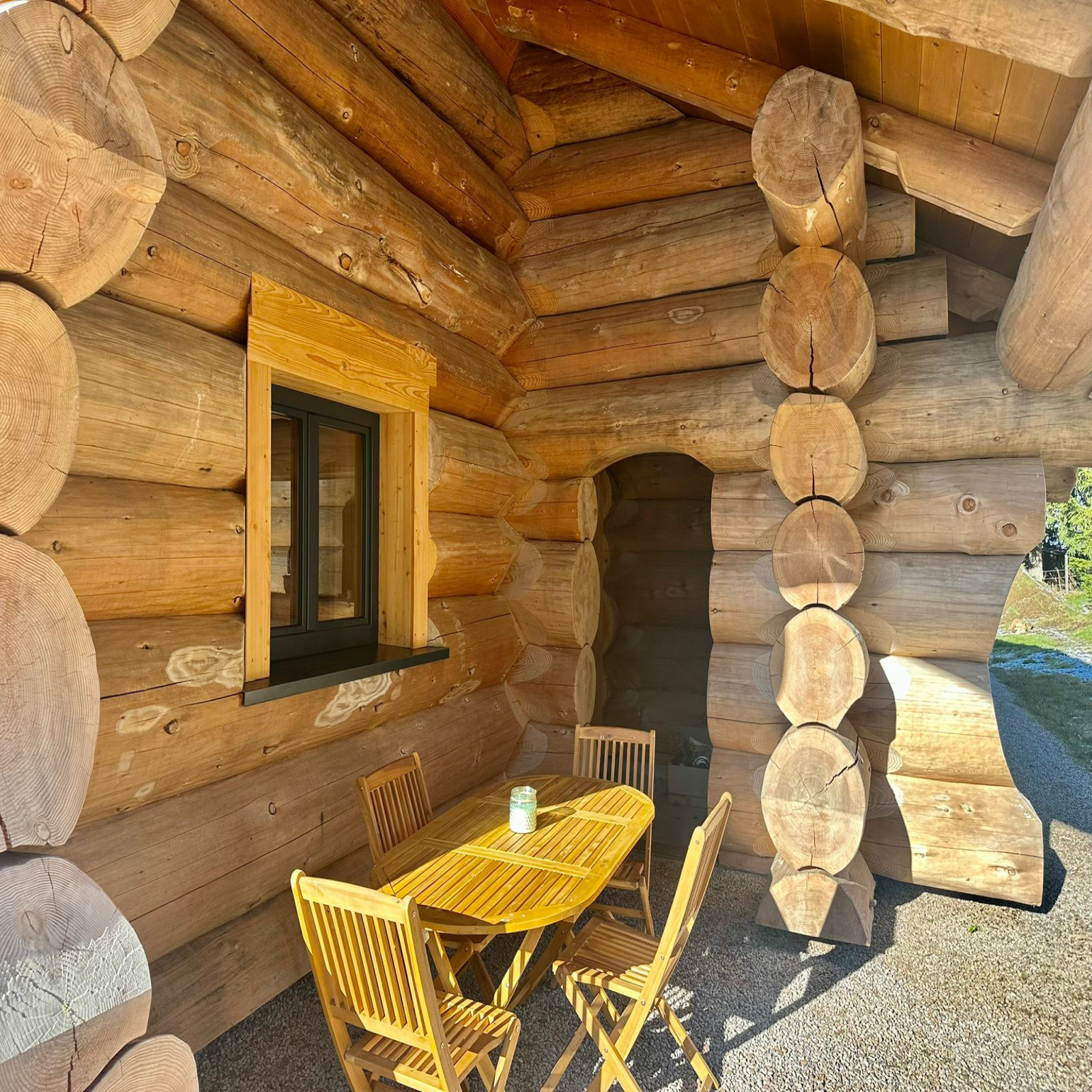 Solène vous présente en exclusivité ce superbe chalet en fuste Douglas (très gros rondins 50/60 cm) de 2023, 116 m2, sur terrain de 4640 m2 comprenant :