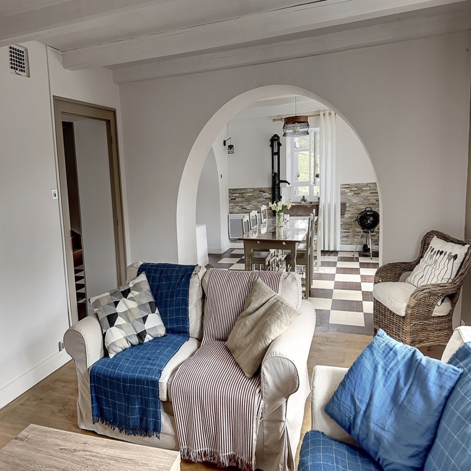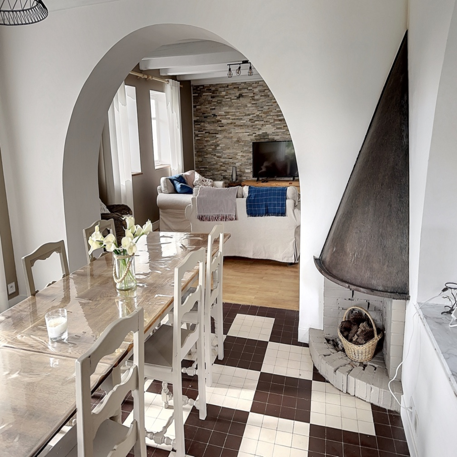 Solène vous invite à découvrir en exclusivité cette jolie maison de village habitable, 6 pièces, 130 m2 env, sur son beau terrain de 2375 m2, elle comprend :
