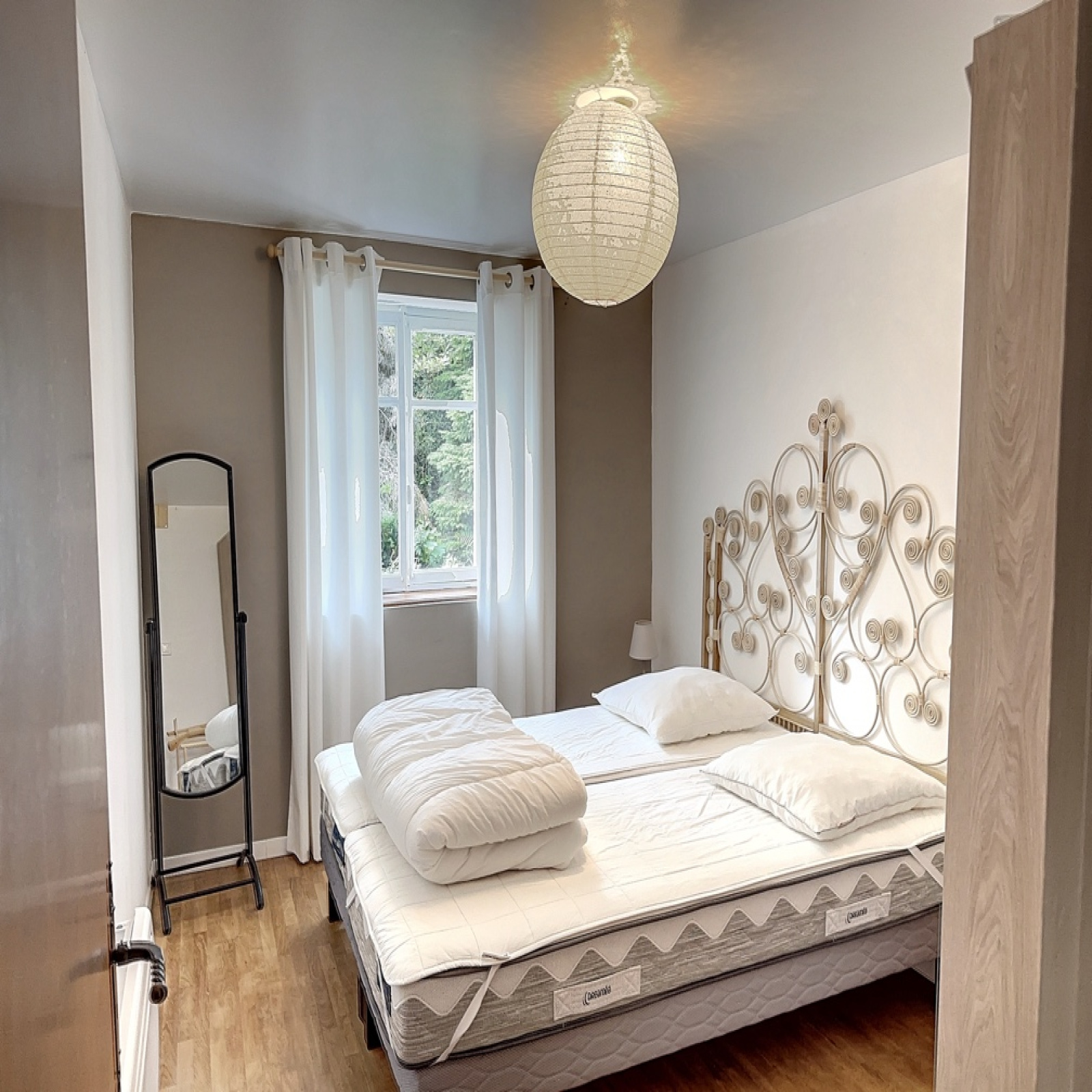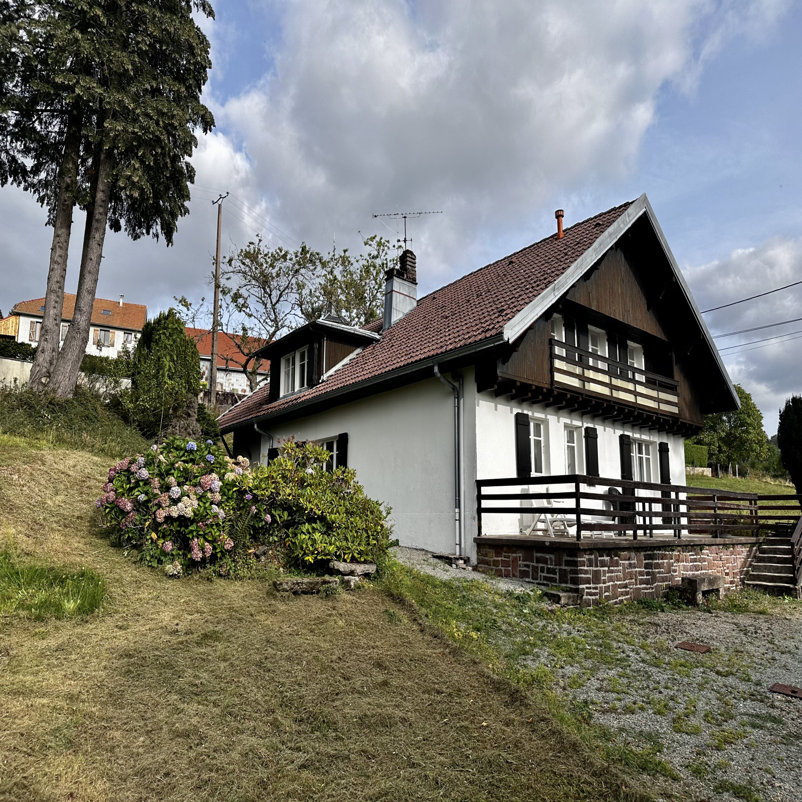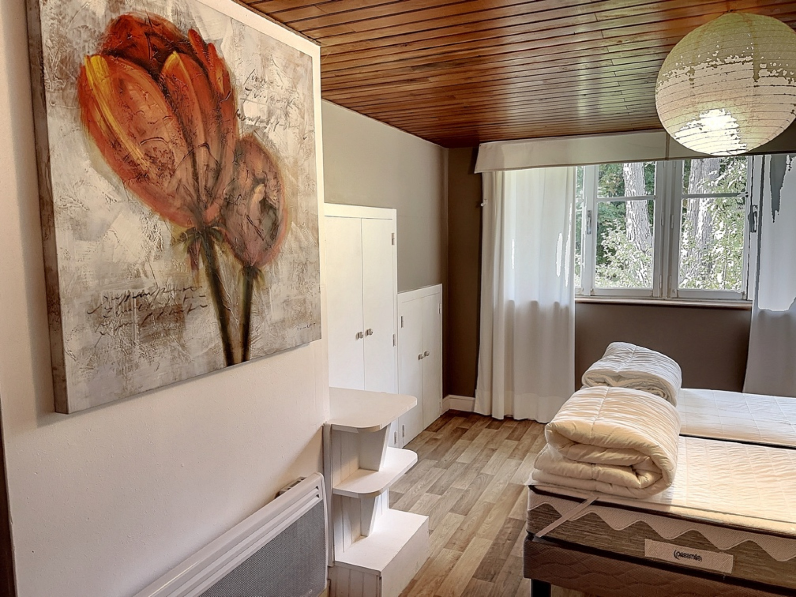 A l'étage : dégagement, une 2ème chambre avec placard et accès balcon, une 3ème chambre avec salle d'eau/wc et placard.