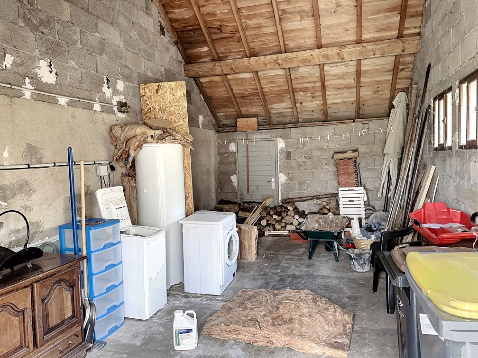 Garage avec coin buanderie.