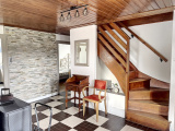 Au rez-de-chaussée : entrée avec poêle à bois, cuisine équipée, salle à manger / salon avec accès terrasse, une chambre, un bureau, salle d'eau, wc.
