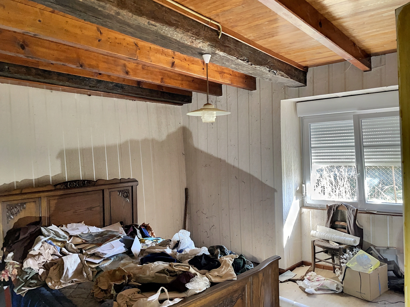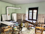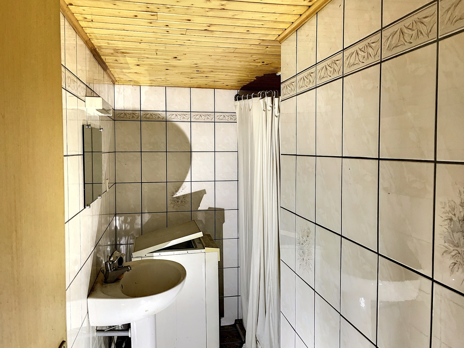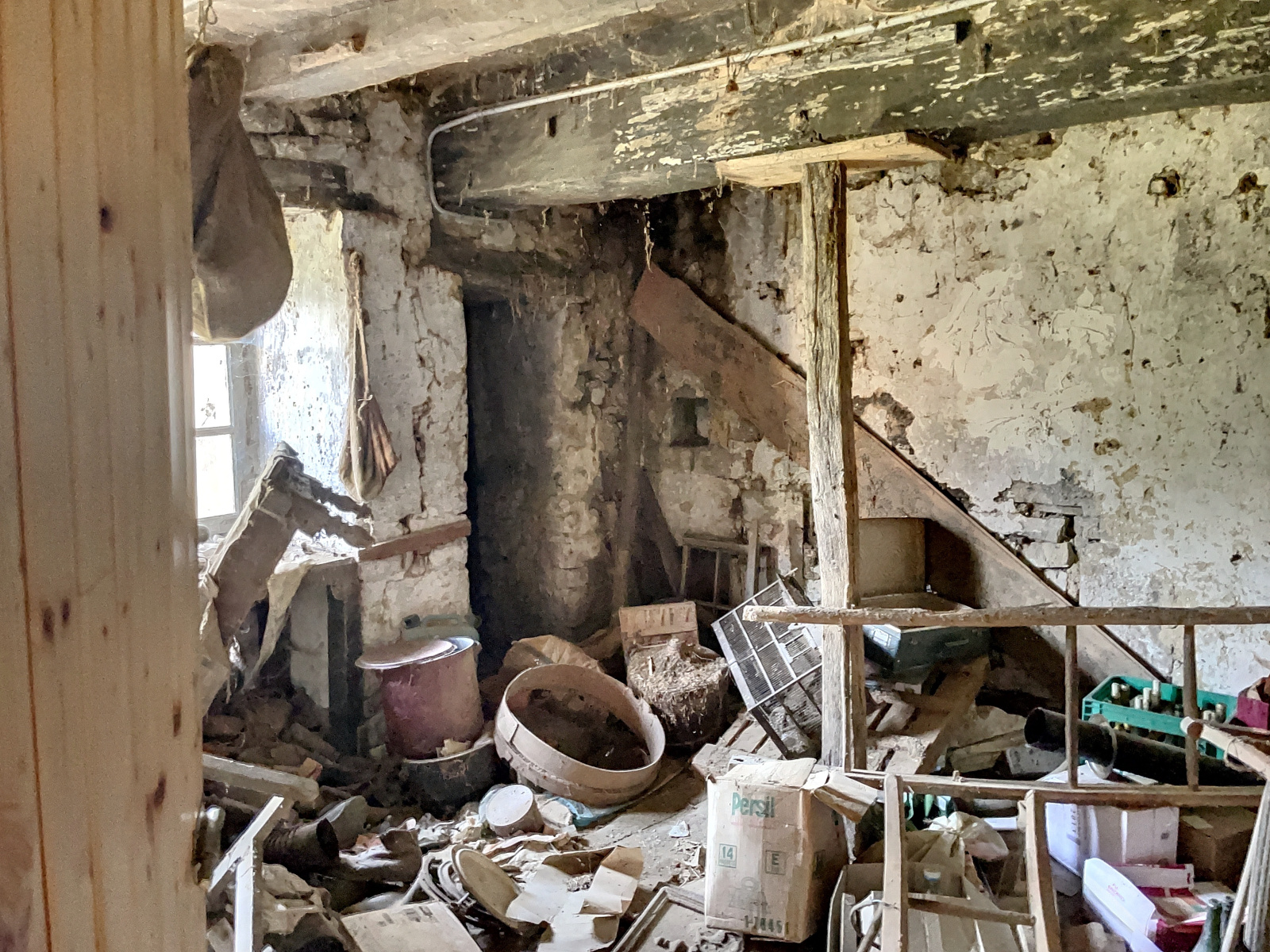 Une partie habitation composée d'une cuisine (19 m2 env), salle à manger (19 m2 env), une chambre (17 m2 env), une pièce débarras (19 m2 env), salle d'eau (4 m2 env), wc, dégagement au rez-de-chaussée ; une chambre (18 m2 env) à l'étage. Cave.
