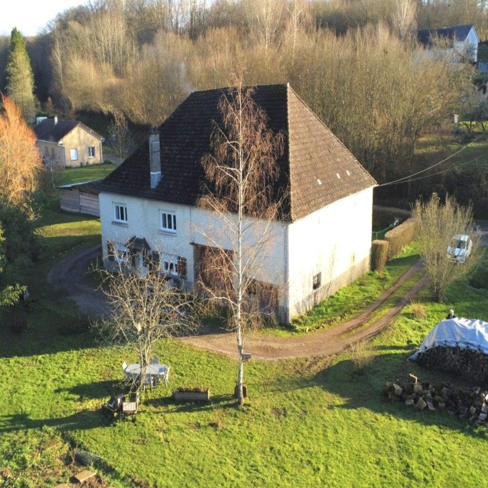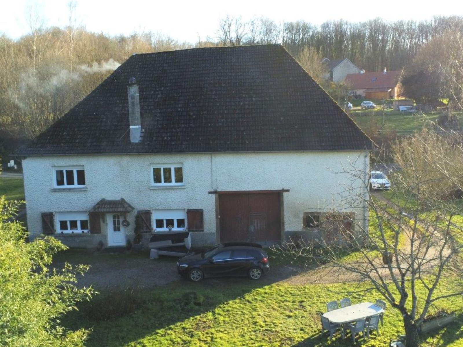 Grande grange avec chaufferie, bûcher, garage.