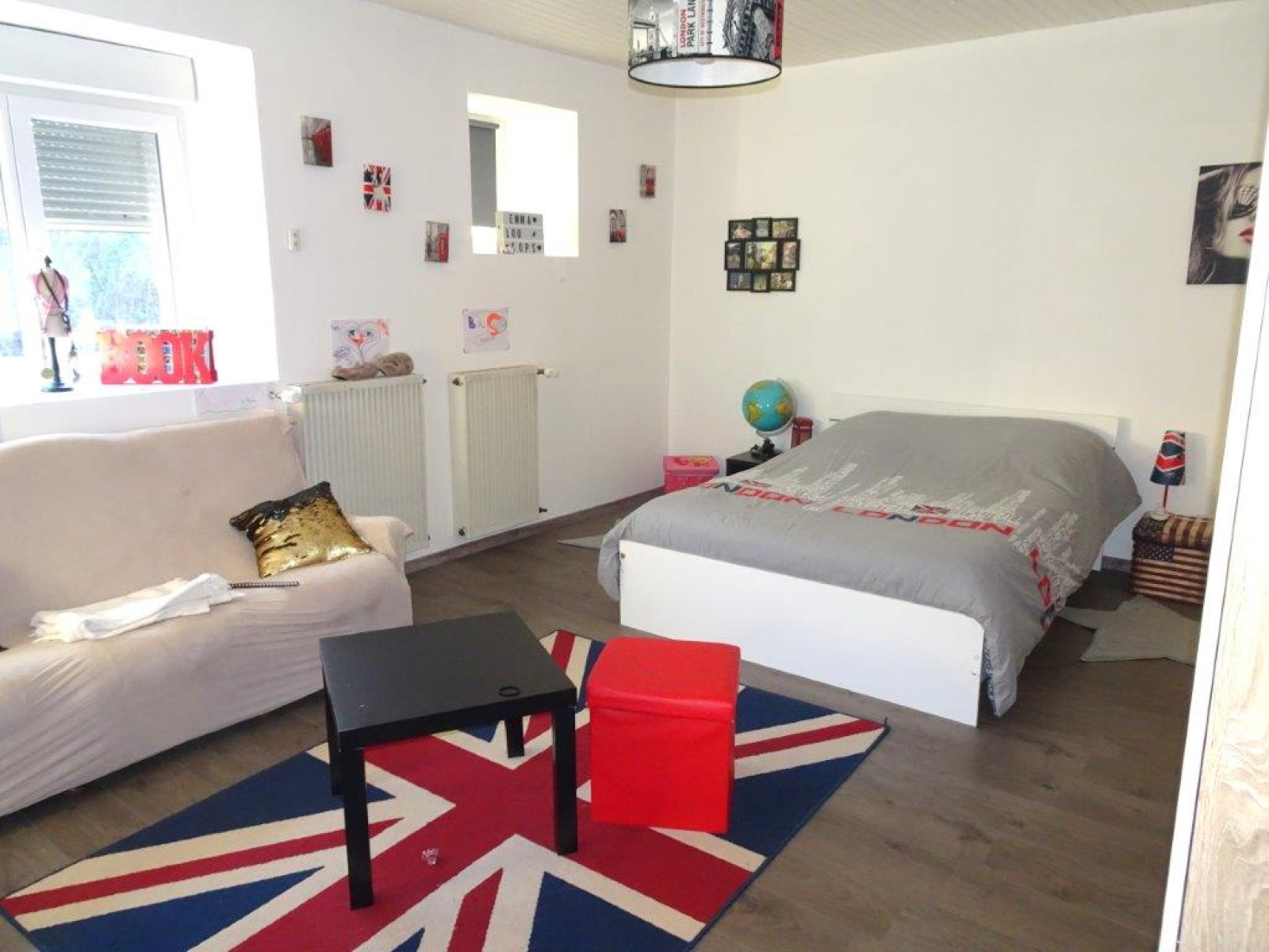A l'étage : dégagement, 4 belles chambres (entre 20 et 25 m² env).
