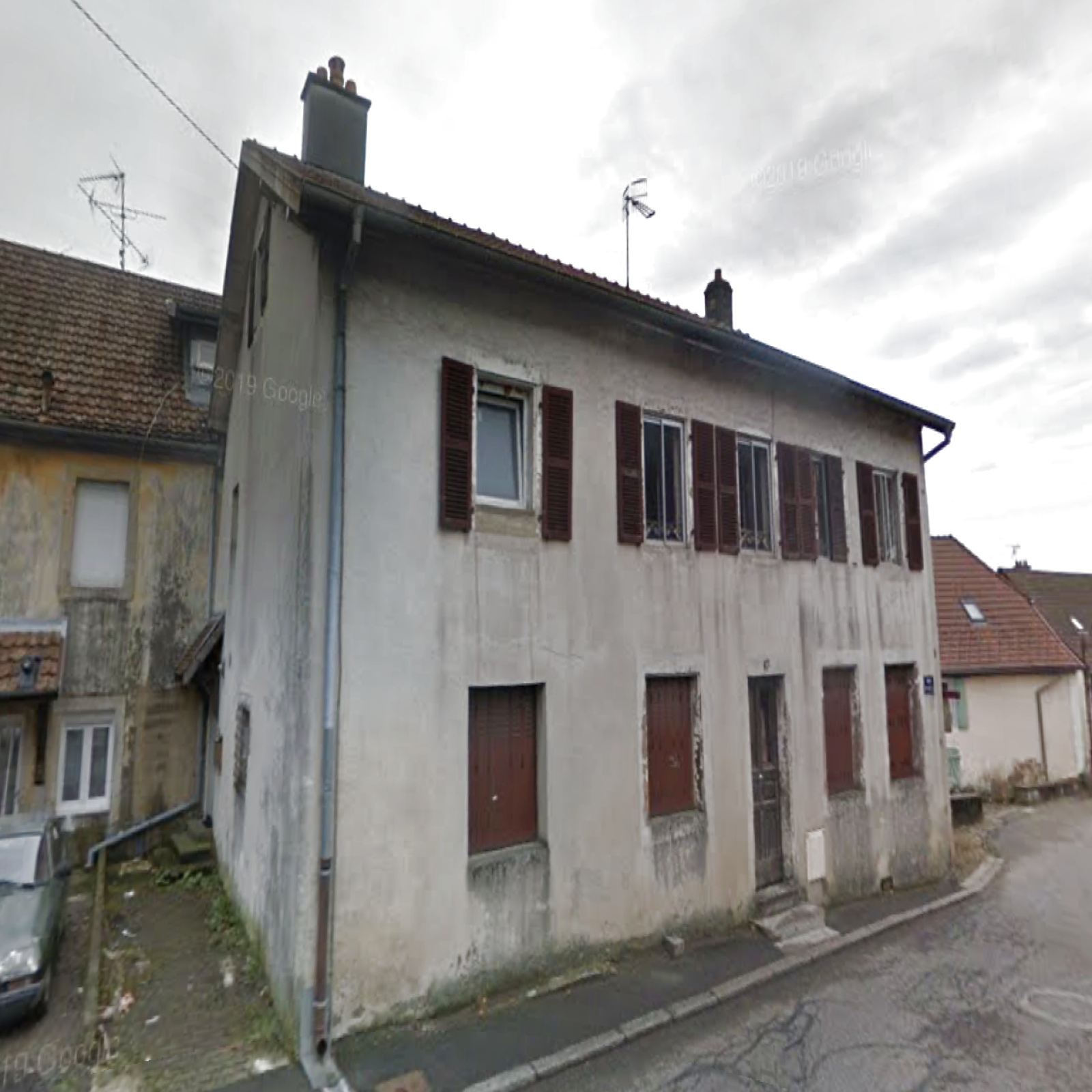 Bord de route, maison mitoyenne sur un angle entièrement à rénover, sur terrain de 440 m². Elle se compose de :