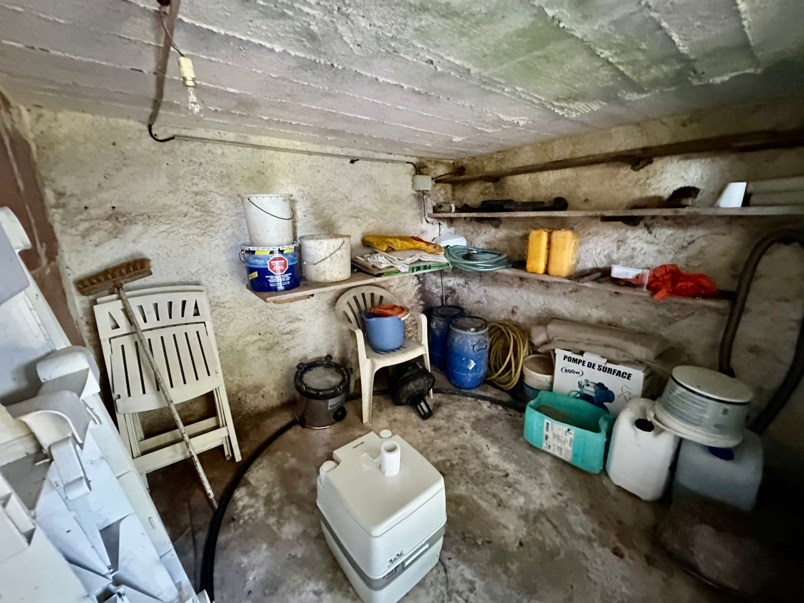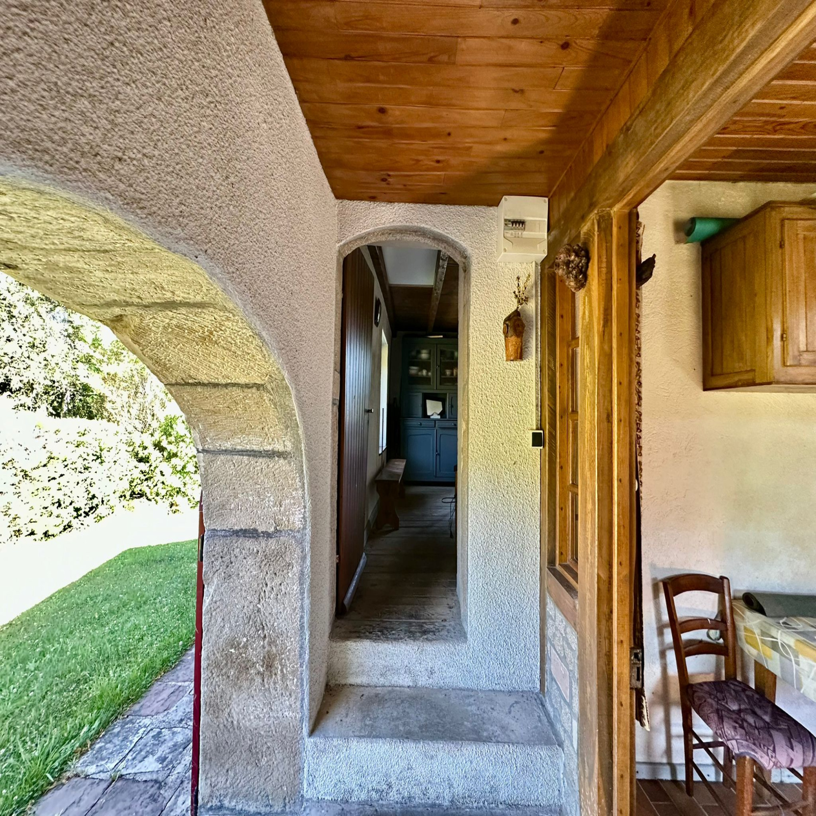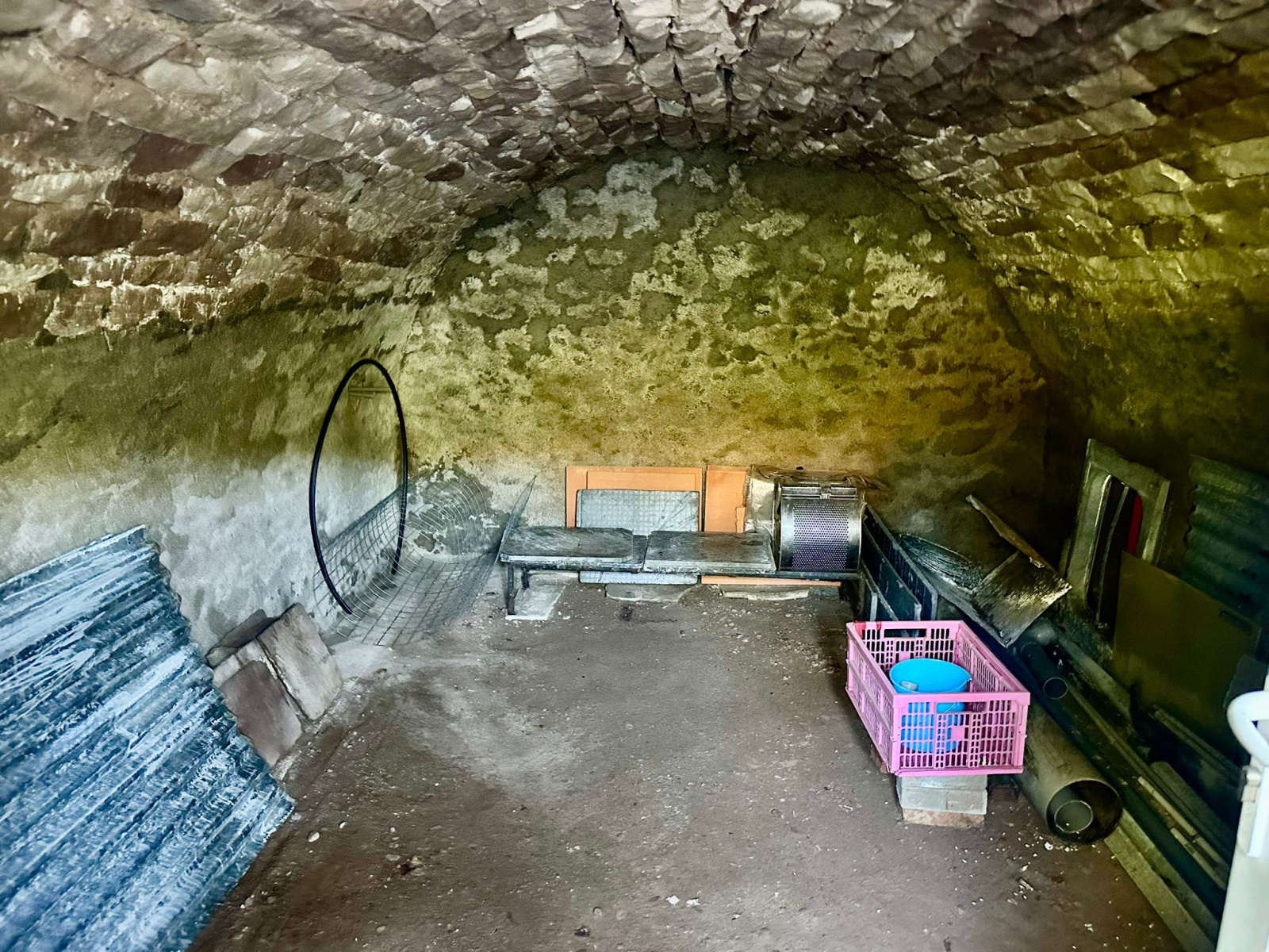 Cave voûtée, petit chalet en bois.
