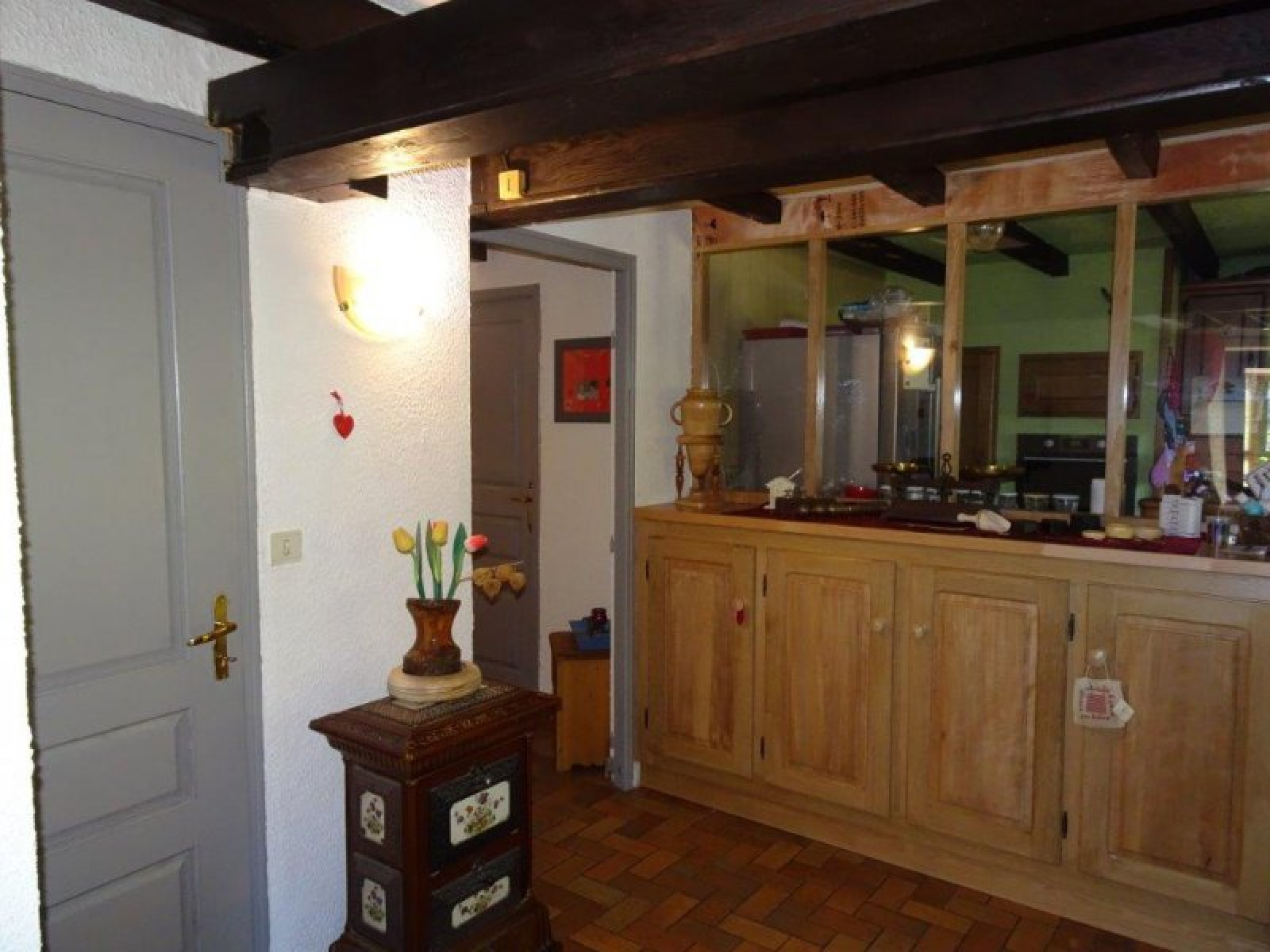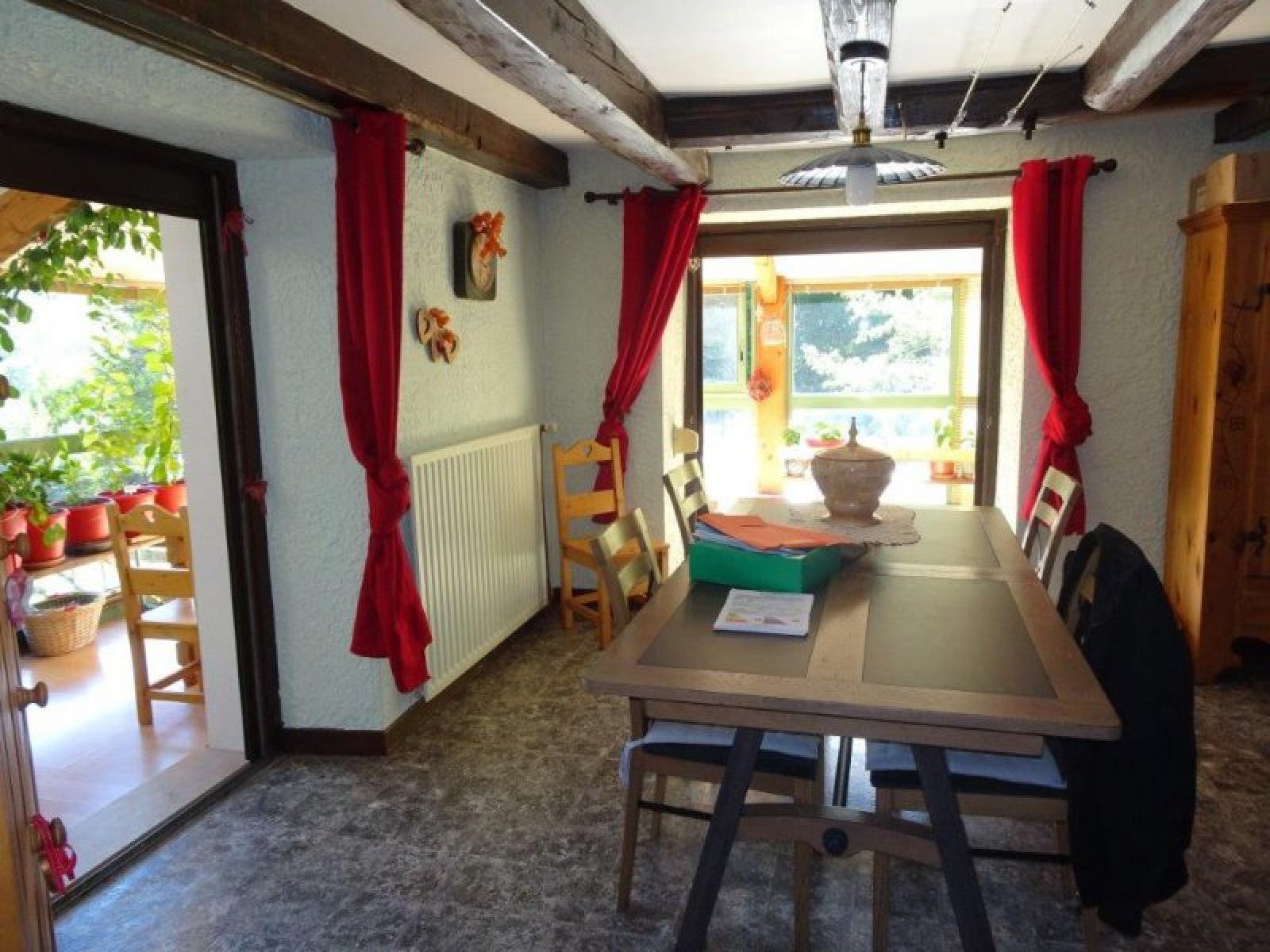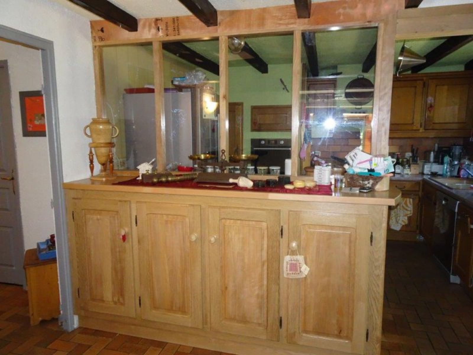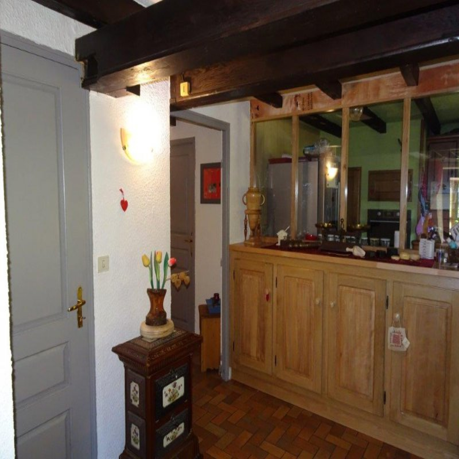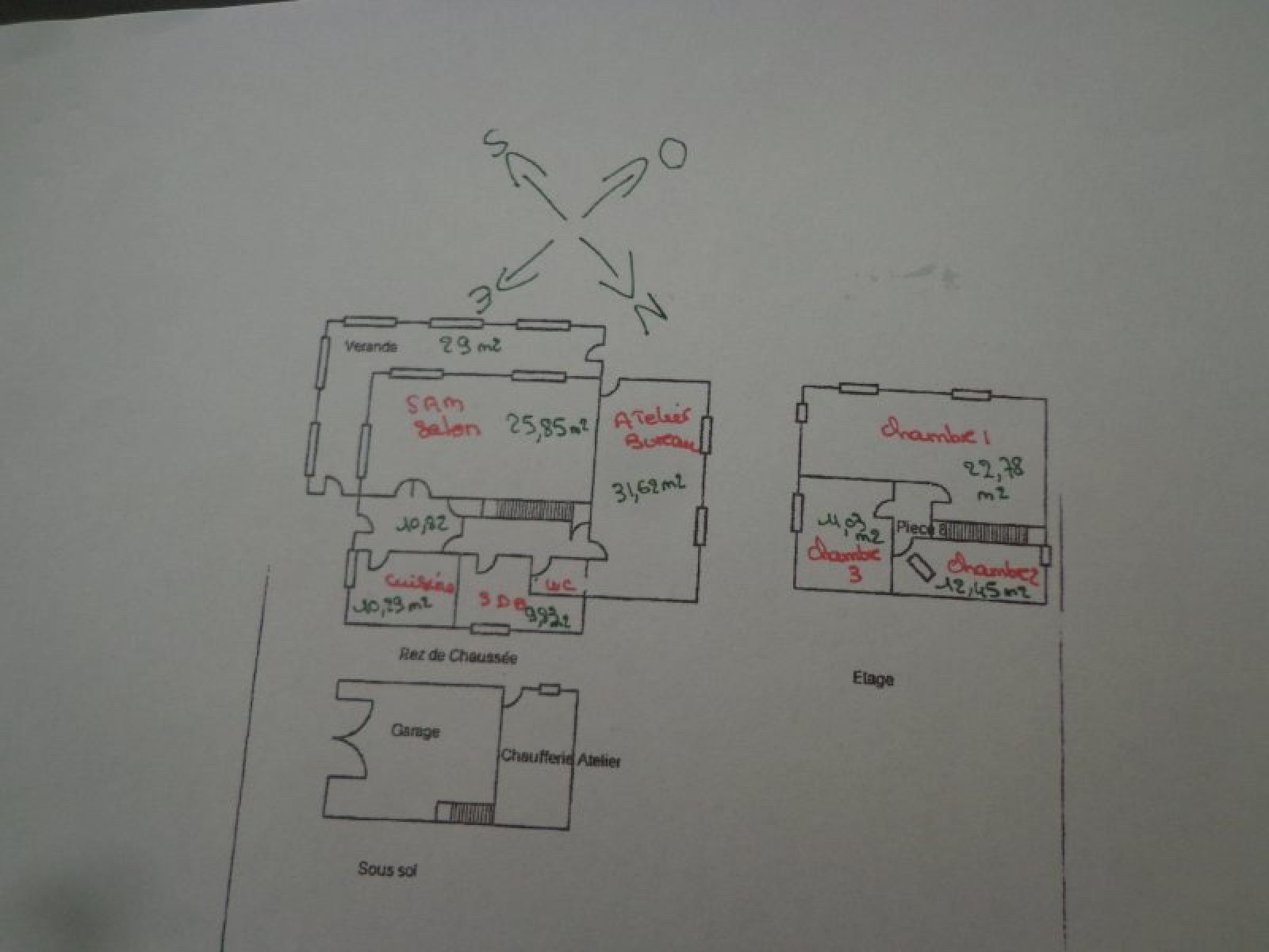 Au rez-de-chaussée : entrée, cuisine aménagée, salle à manger / salon avec cheminée insert, véranda, salle de bains, wc, cellier. (possibilité de faire une chambre au rez-de-chaussée)