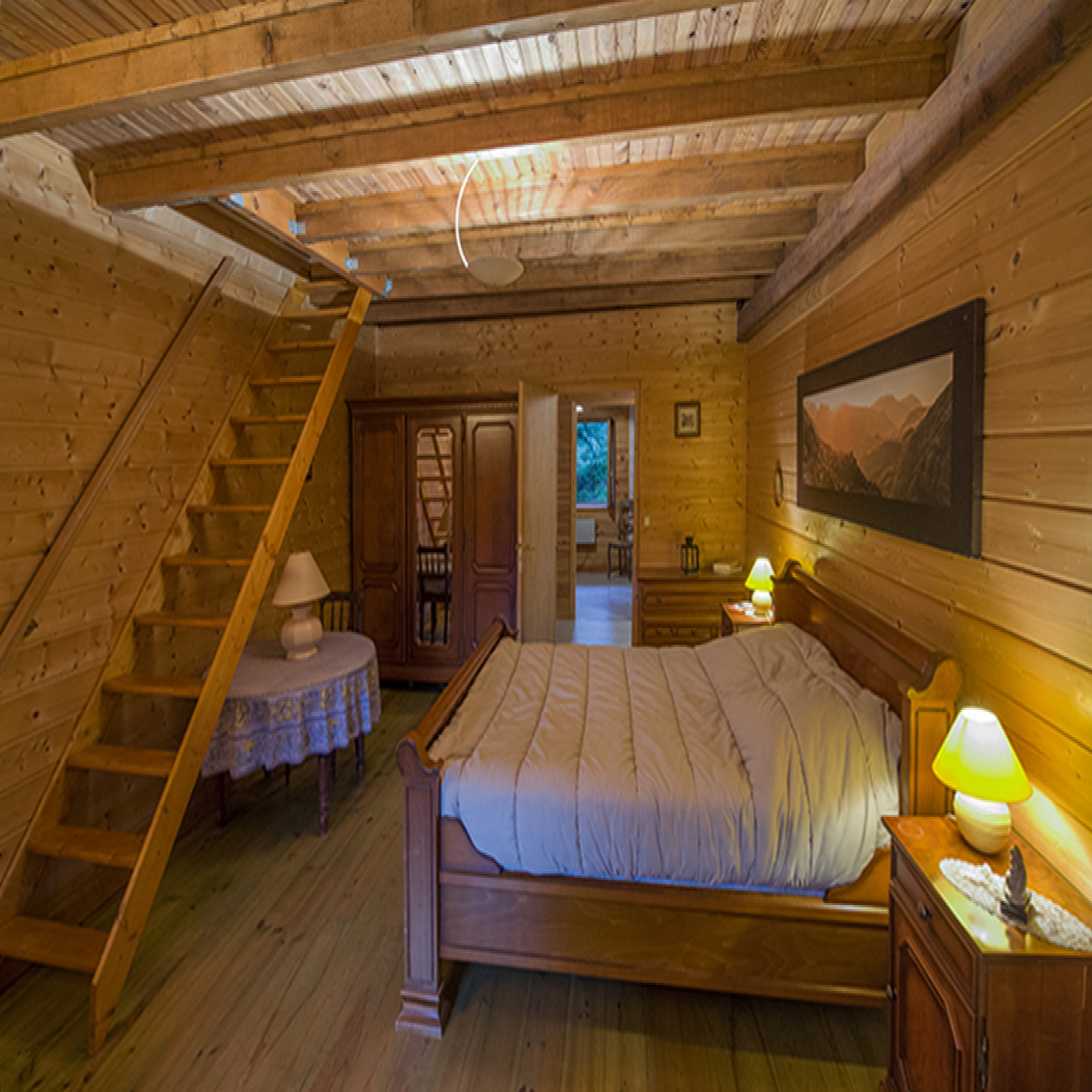 Le 1er logement se compose d'une entrée (8 m² env), cuisine (17 m² env), séjour (27 m² env) avec cheminée au rez-de-chaussée ; une chambre (22 m² env), salle de bains (10 m² env), wc au 1er étage ; chambre mezzanine (22 m² env) au 2ème étage.