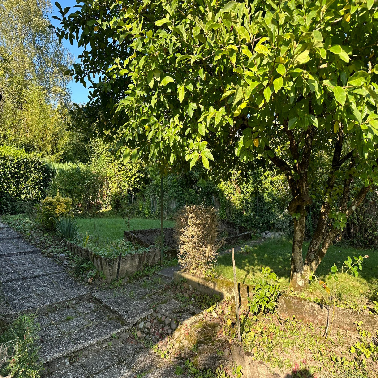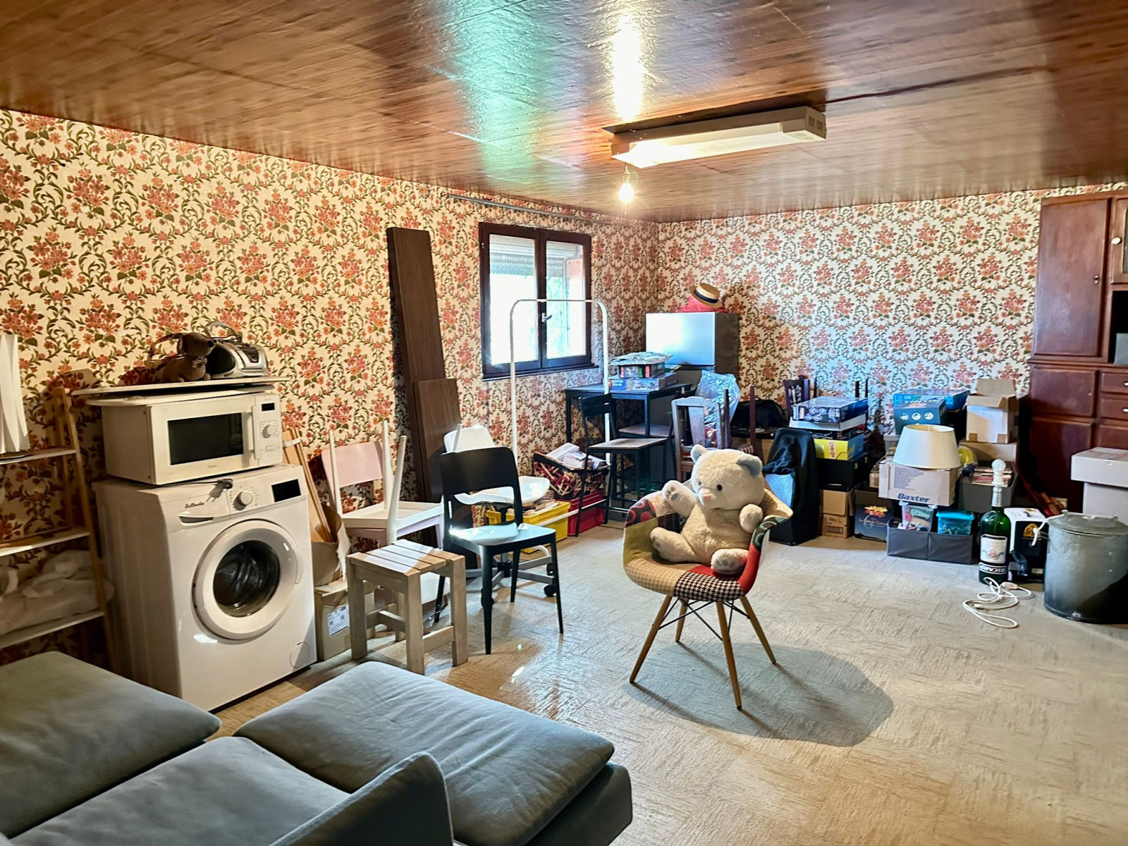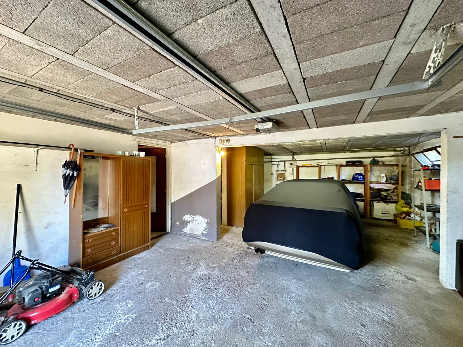 Au rez de jardin : garage avec porte motorisée pouvant accueillir 2 véhicules, une pièce pouvant être aménagée en cuisine d'été et chaufferie.