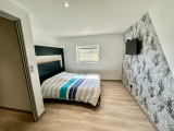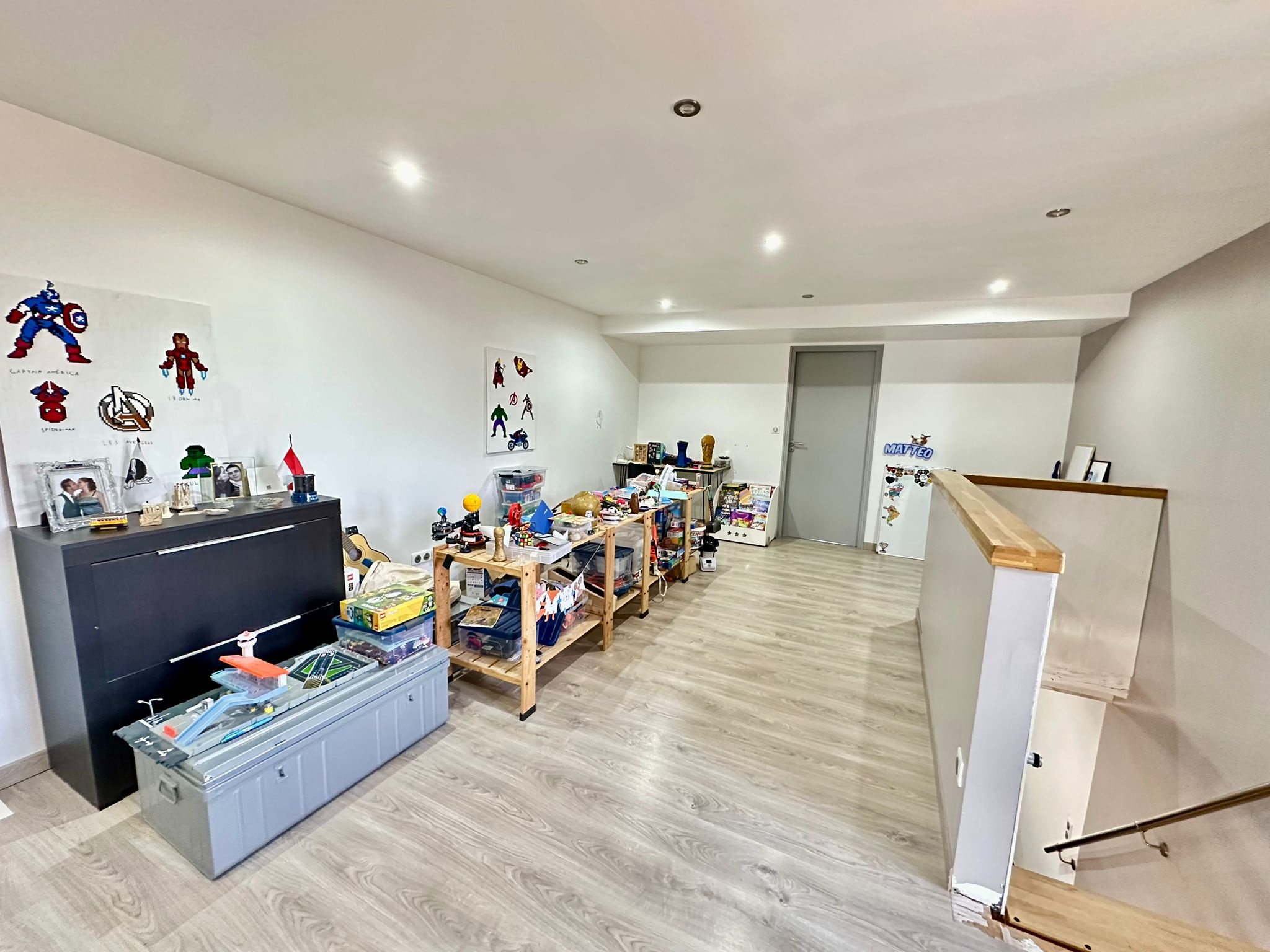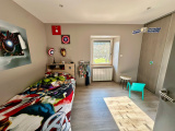 A l'étage : mezzanine (25 m2 env), couloir (7 m2 env), 3 chambres avec placard (10, 14, 17 m2 env), salle de bains (10 m2 env), wc.