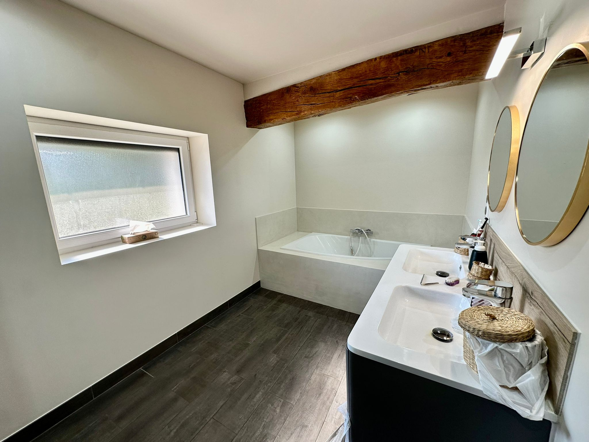 Norbert vous présente en exclusivité cette ferme joliment rénovée, mitoyenne d'un côté, sur son beau terrain de 1961 m2, elle comprend :