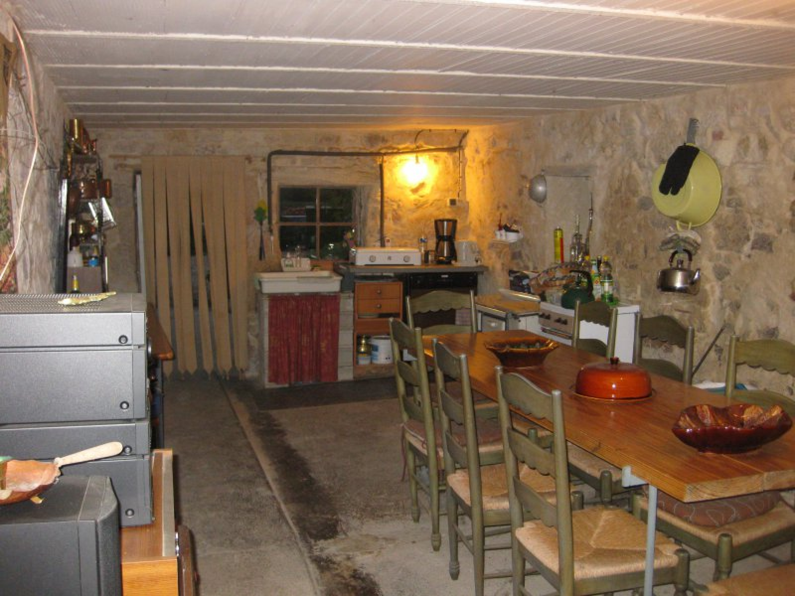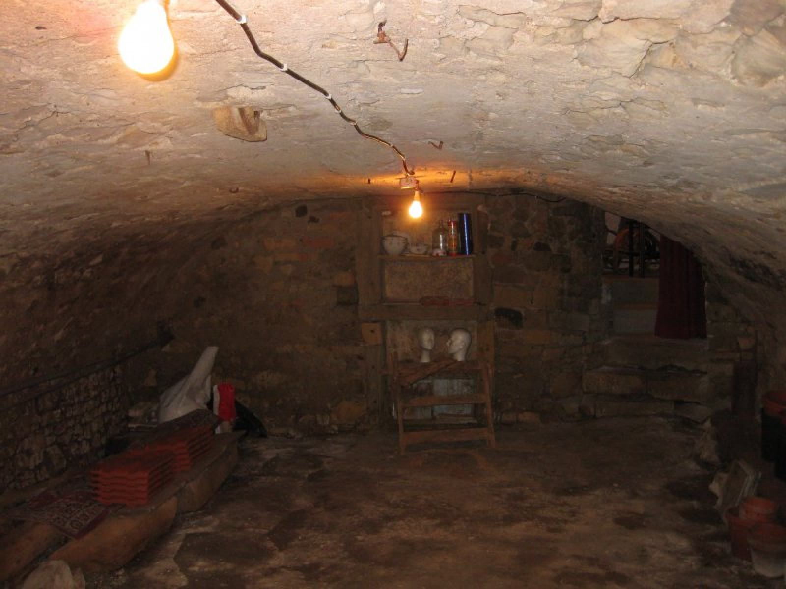 Au rez de chaussée : une entrée, une cuisine aménagée, un salon avec insert, un autre salon avec accès cave voûtée, une salle de bains.