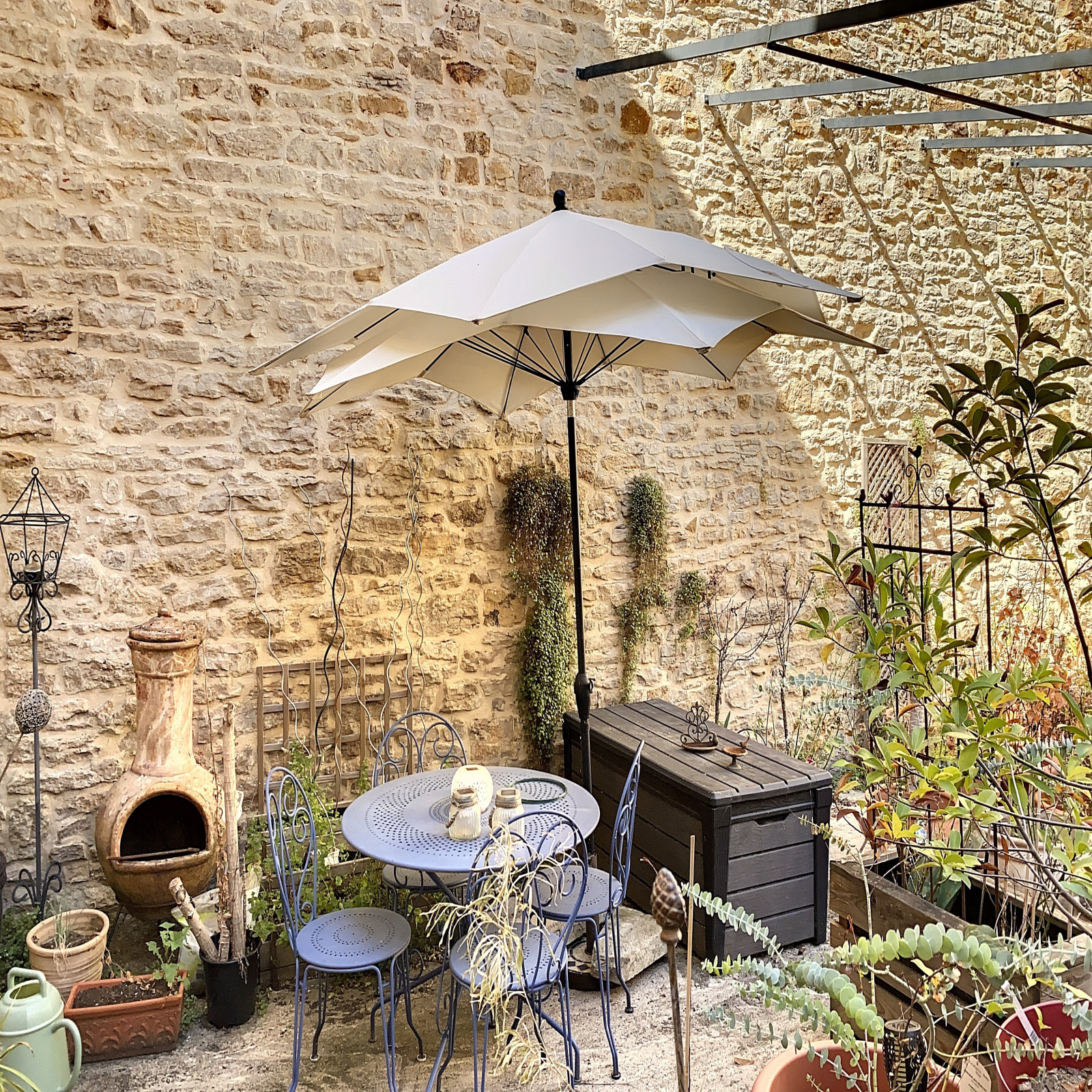 Car-port sous la terrasse pouvant accueillir 3 véhicules, grande cave voûtée avec 2 accès sur la cour, cellier, local poubelles.