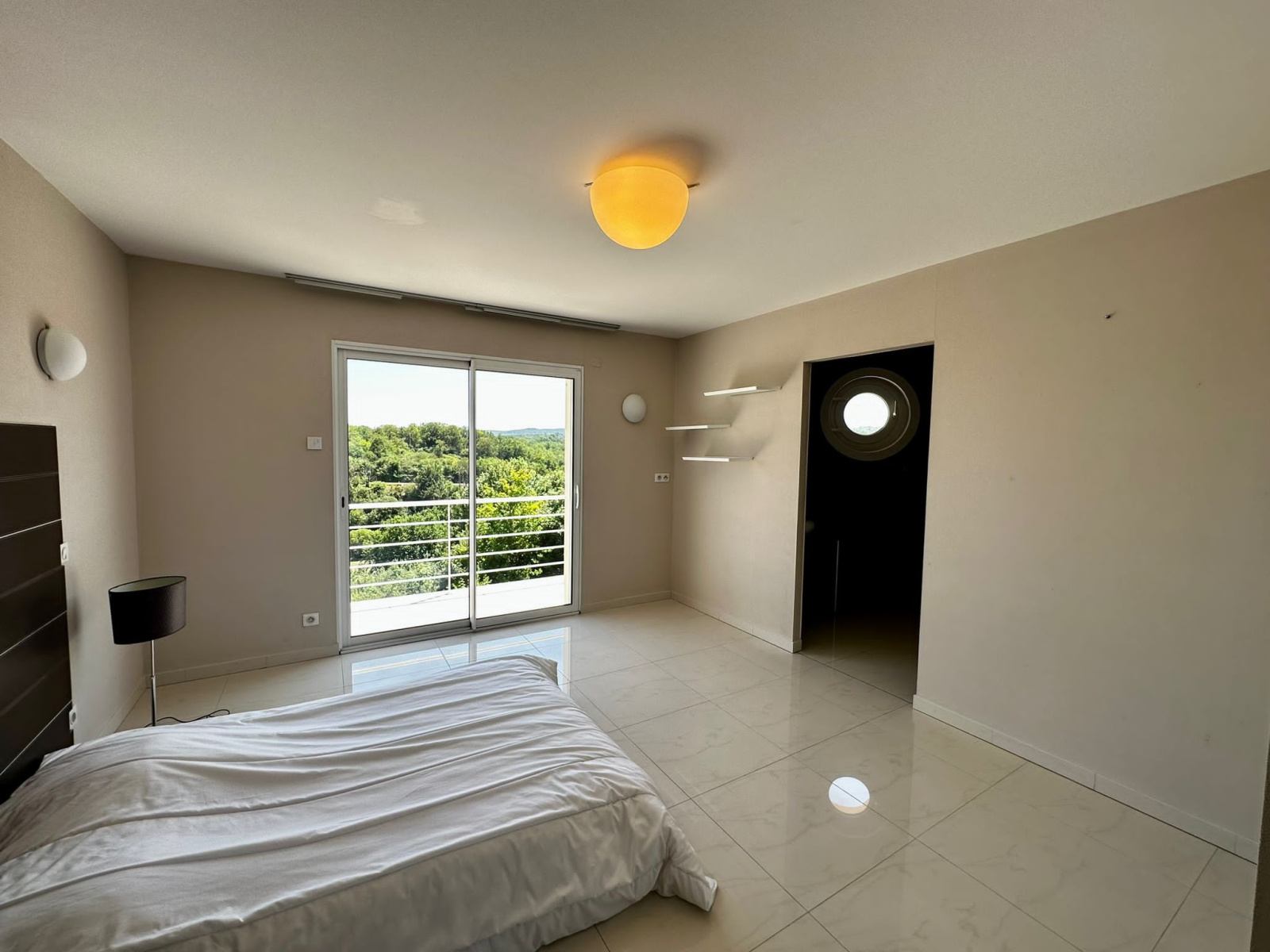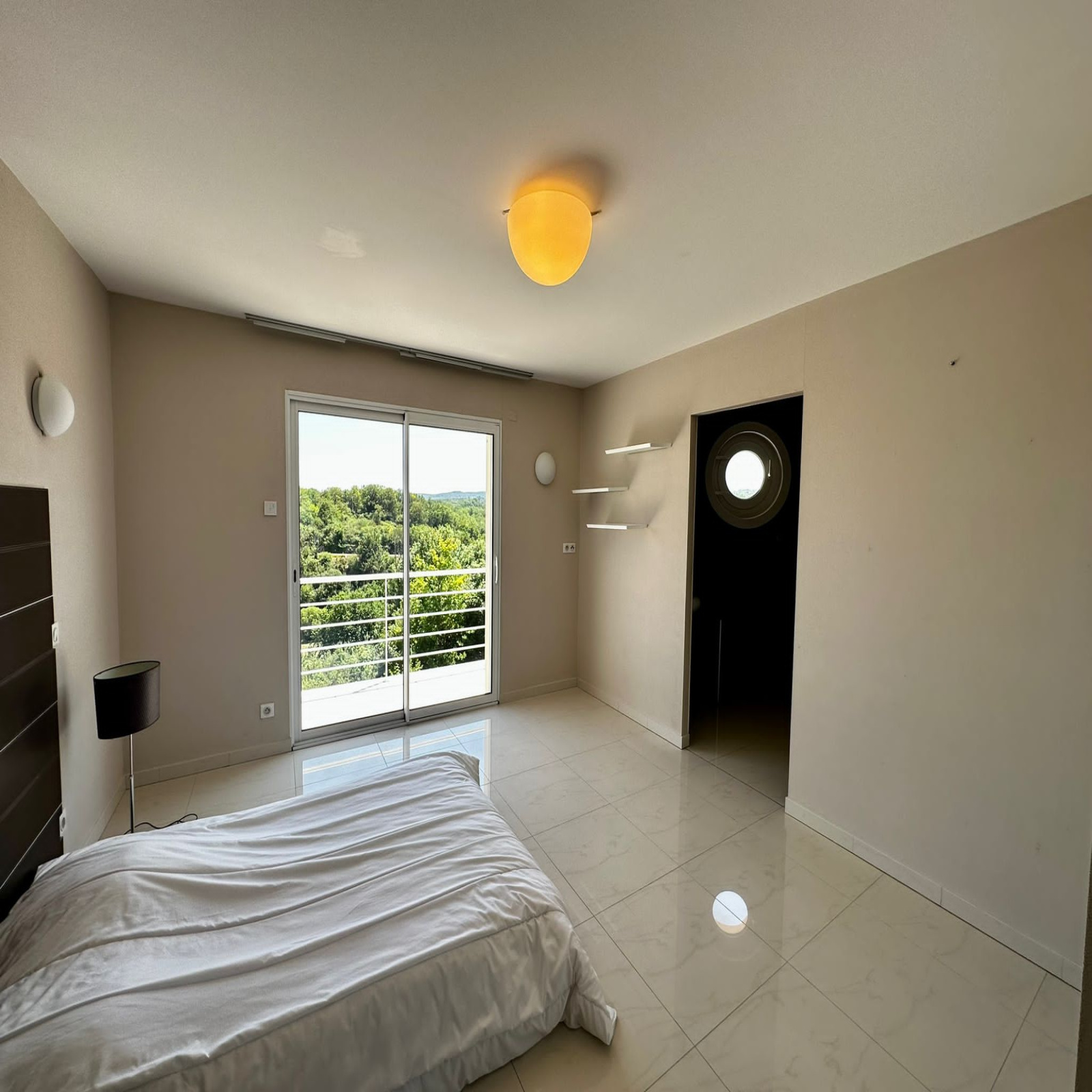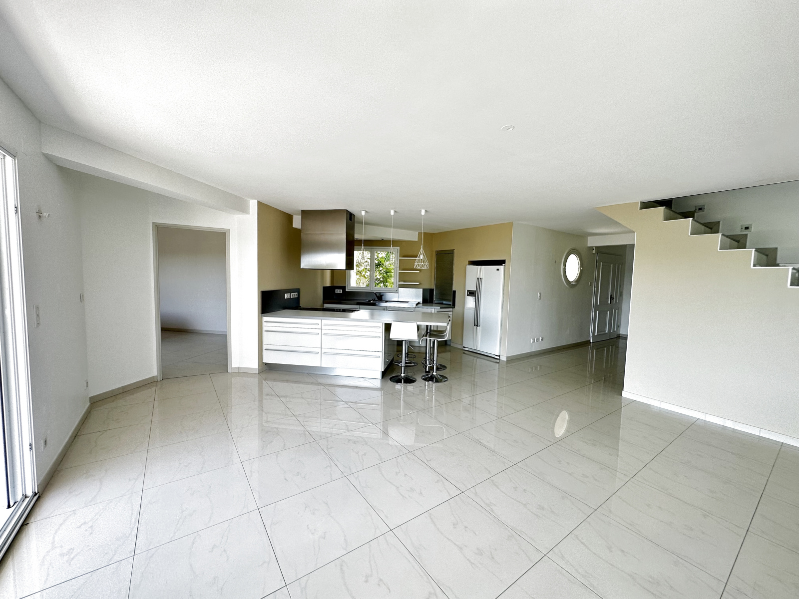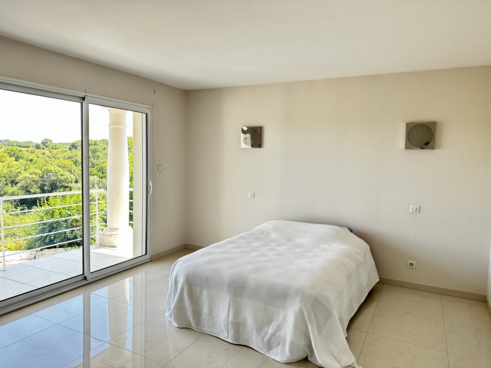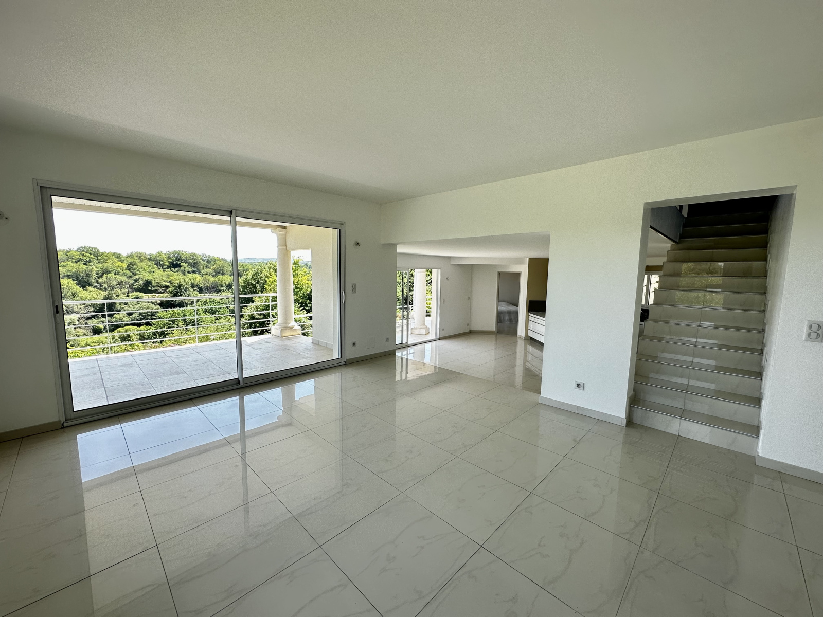Laurence est heureuse de vous présenter cette superbe villa (2007) de style méditerranéen, de 165 m2 jouissant d’une magnifique vue panoramique sur un terrain de 11,74 ares arboré, paysagé et clos dans quartier résidentiel verdoyant au calme, elle comprend :