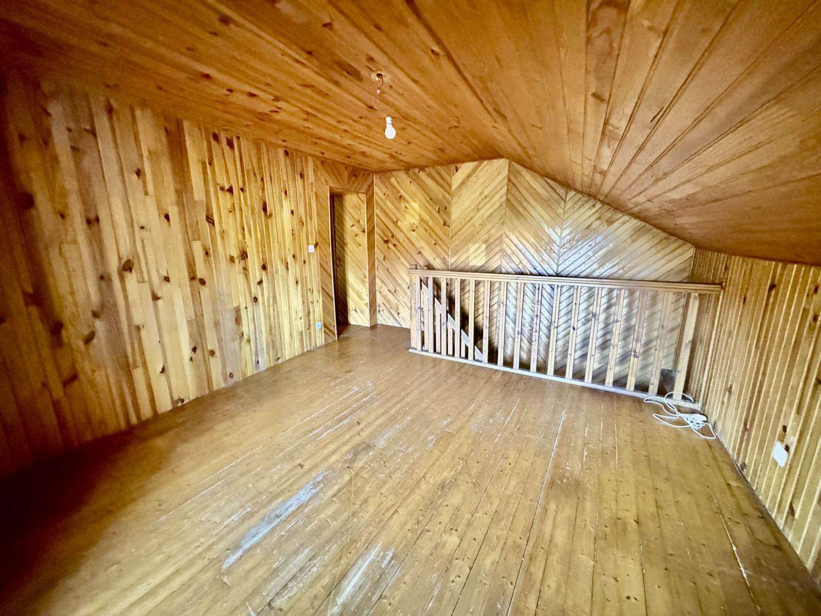 A l'étage: mezzanine (possibilité d'y créer une 3eme chambre indépendante) 2 chambres, salle de bains avec douche. Grentier aménageable sur toute la surface.