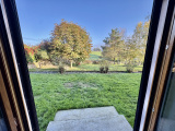 Entrée dans véranda, cuisine, salon/ salle à manger avec accès exterieur,wc.