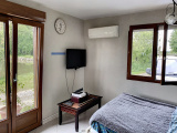 Le chalet (80 m² env), comprend une entrée sur véranda, cuisine, salle à manger / salon, salle d'eau, wc au rez-de-chaussée ; 2 chambres à l'étage.