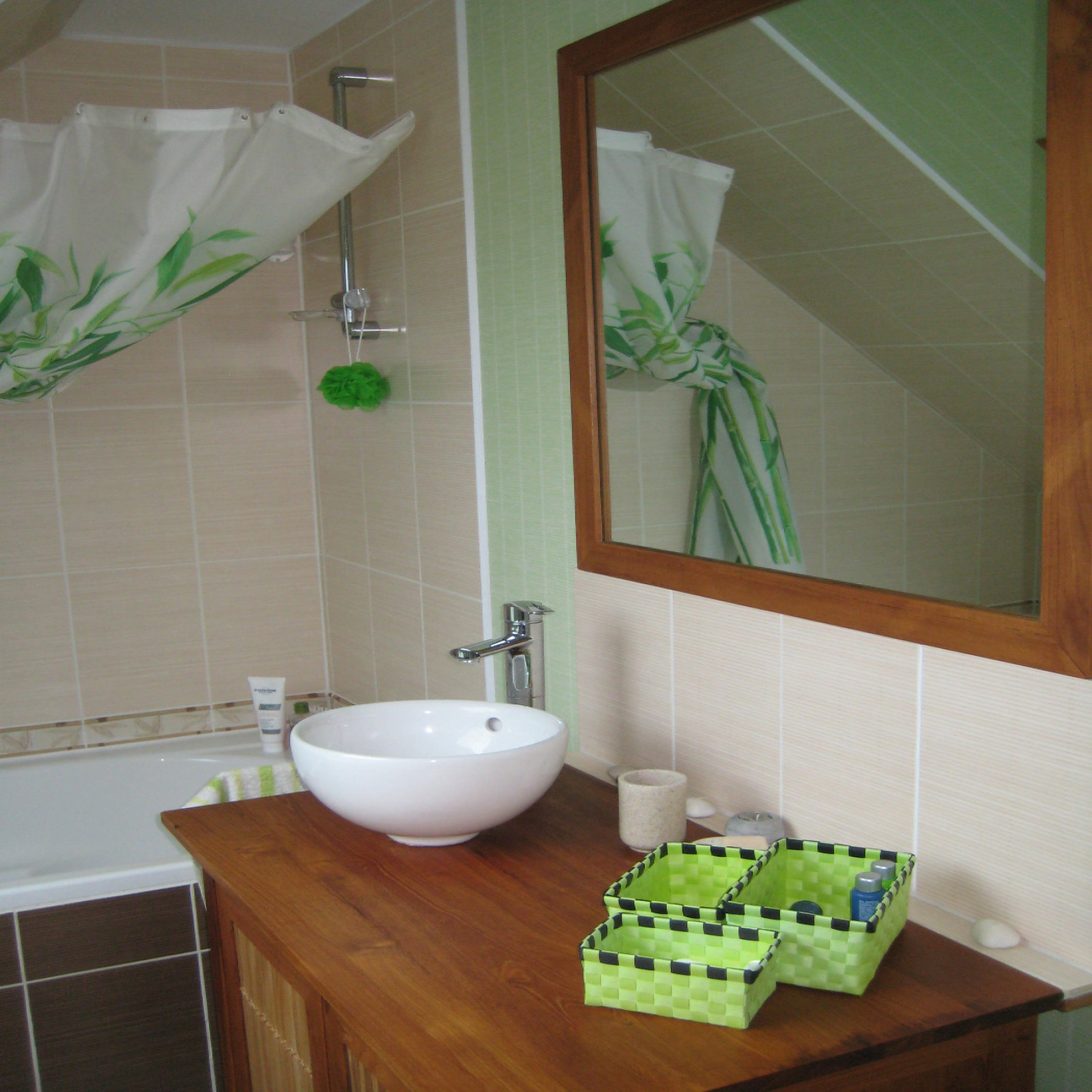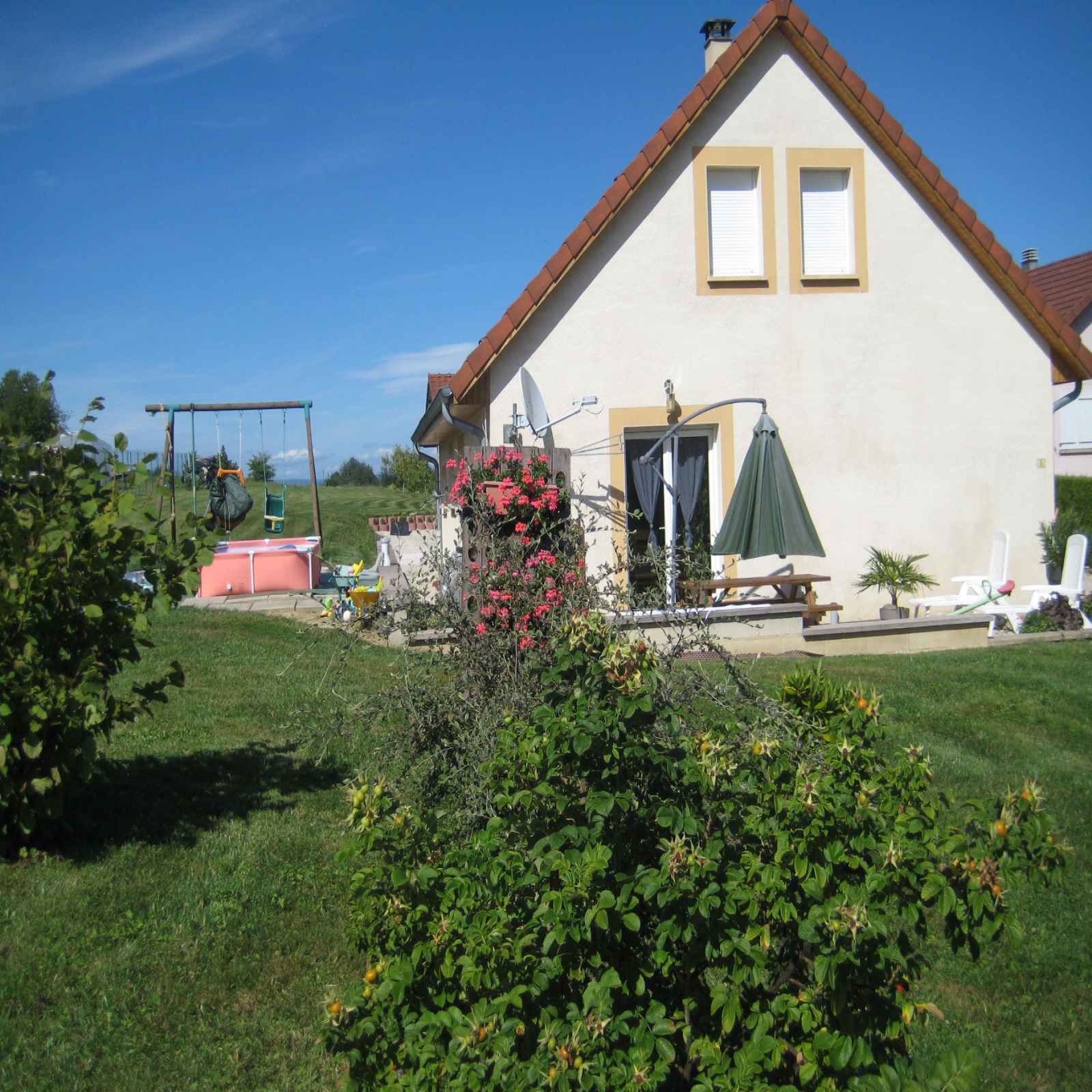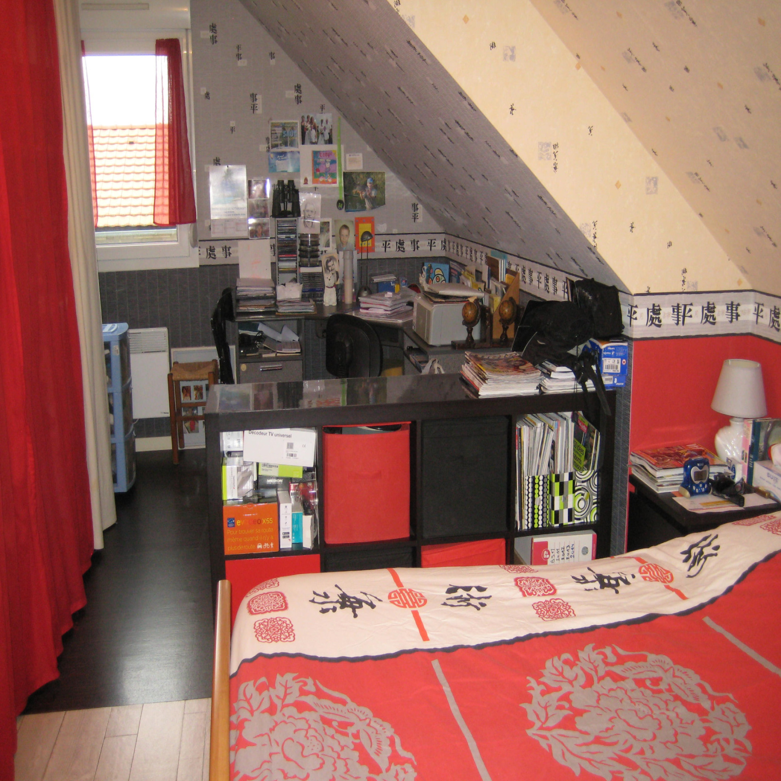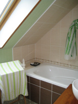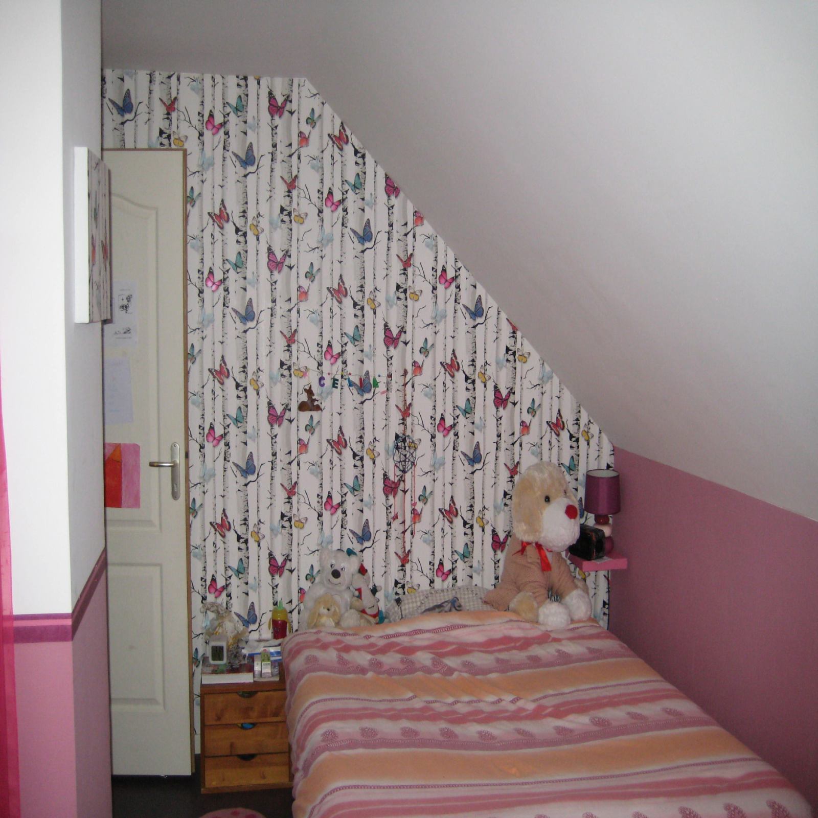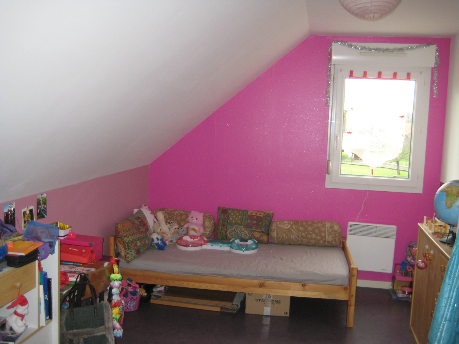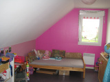 A l'étage : 4 chambres mansardées, salle de bains avec wc.
