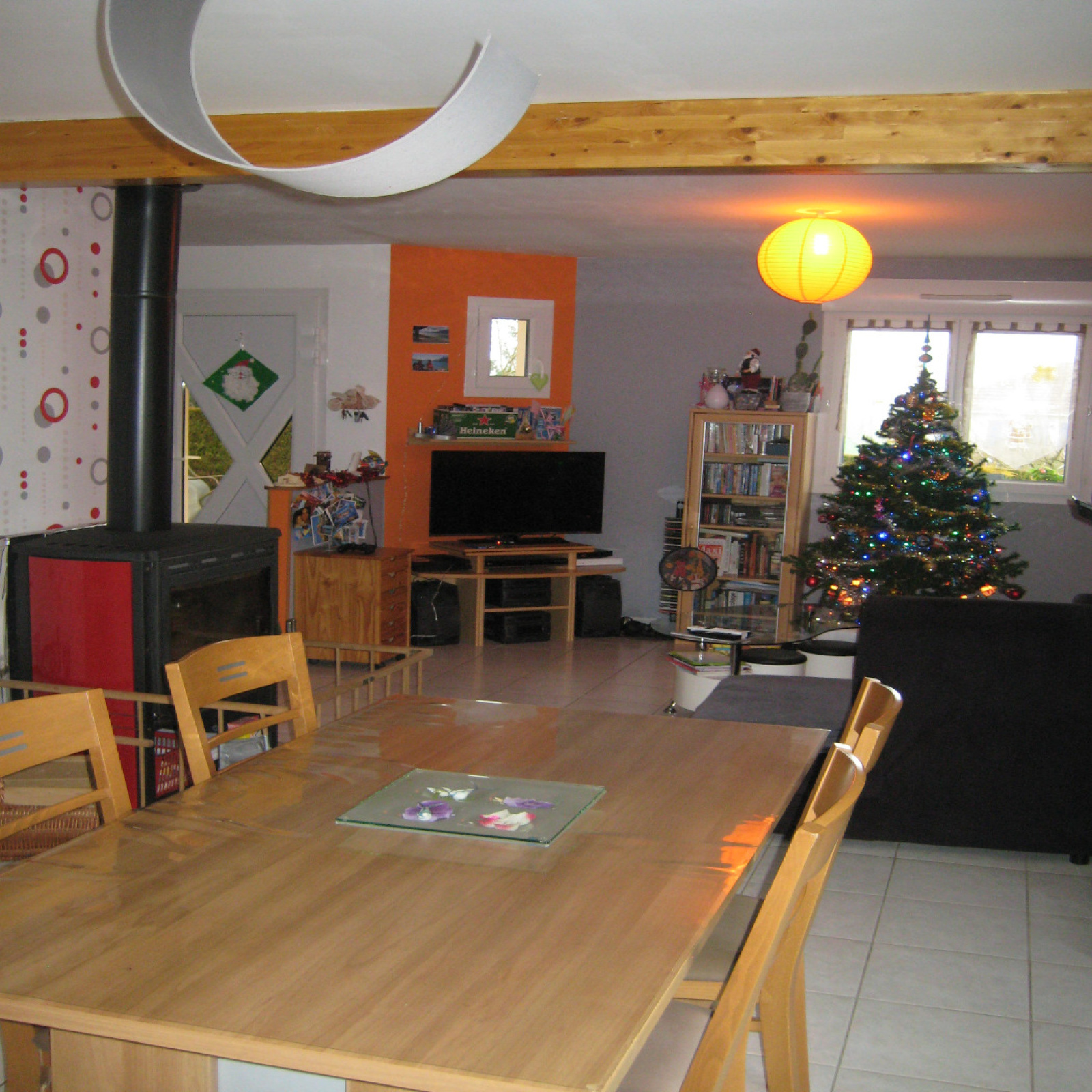 Chauffage électrique (au sol au rez-de-chaussée, convecteurs à l'étage) + poêle à bois.