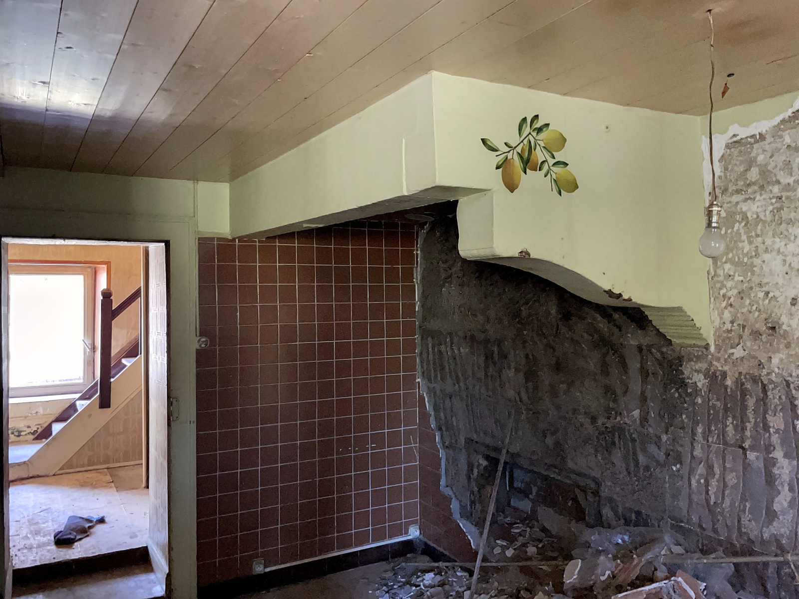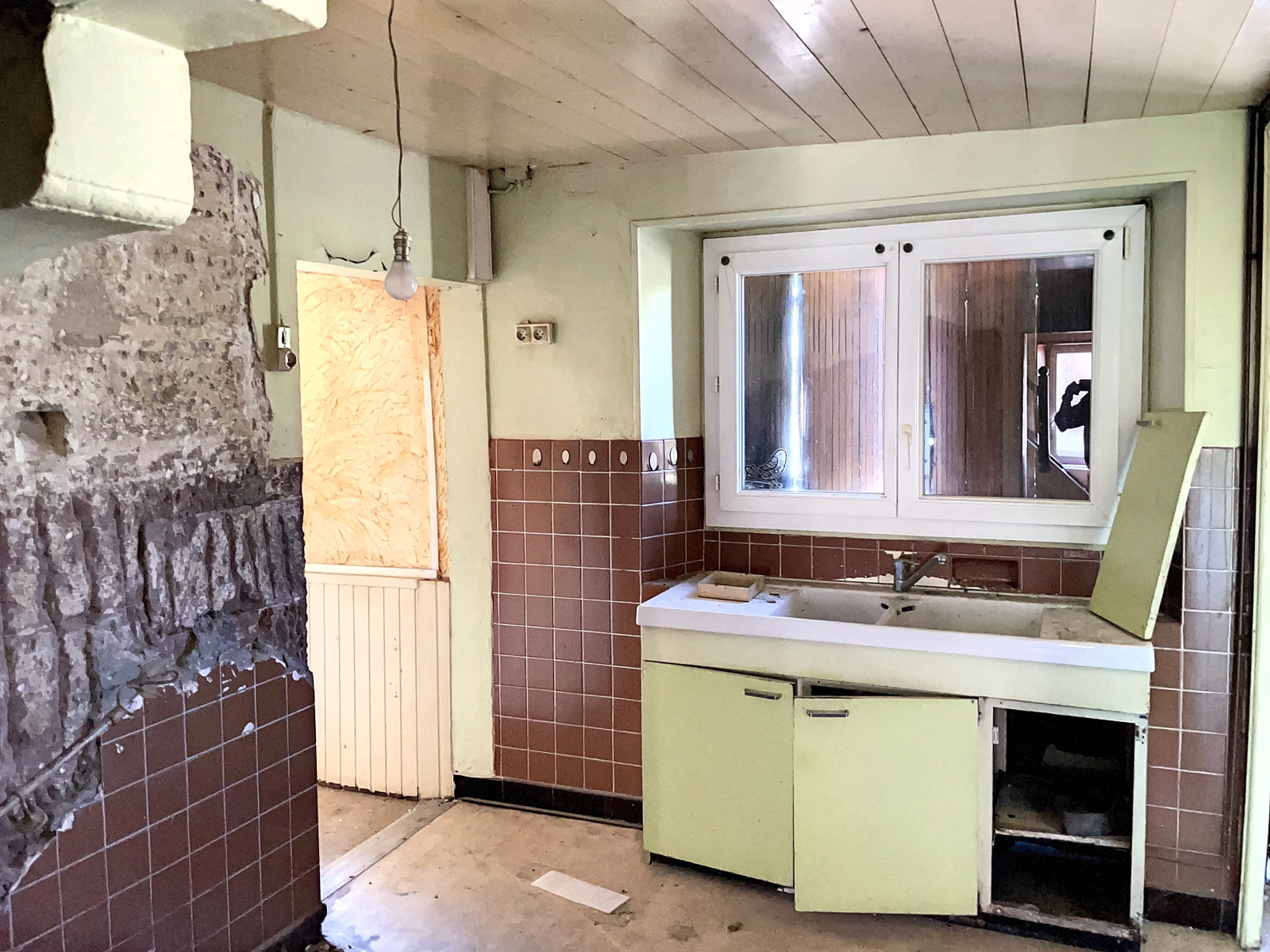 Au rez-de-chaussée : entrée, cuisine, une pièce, wc, magasin (ancienne boulangerie).