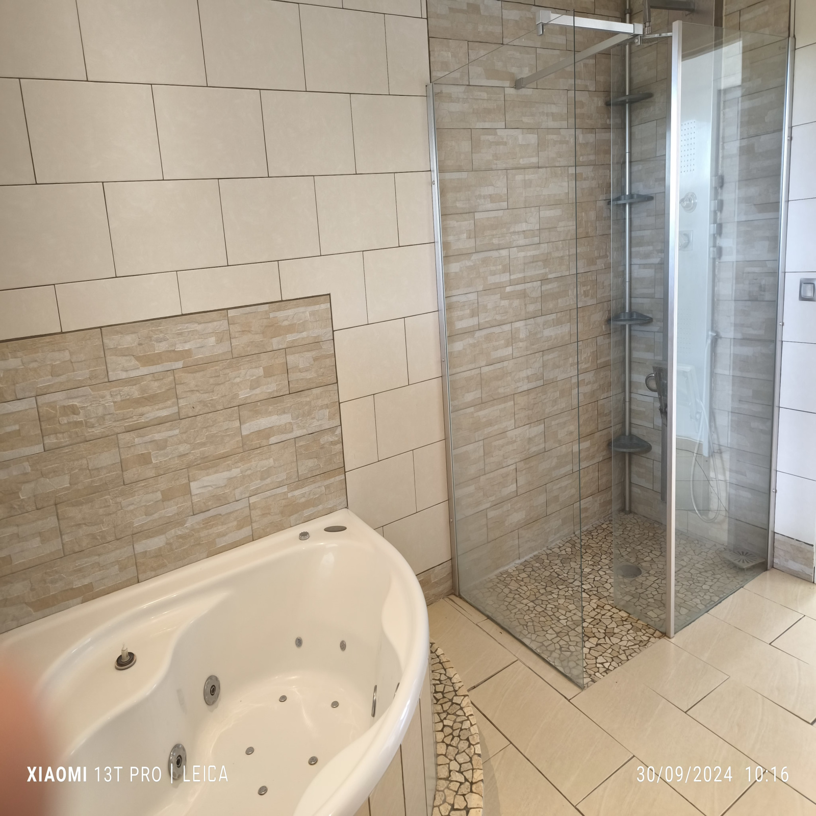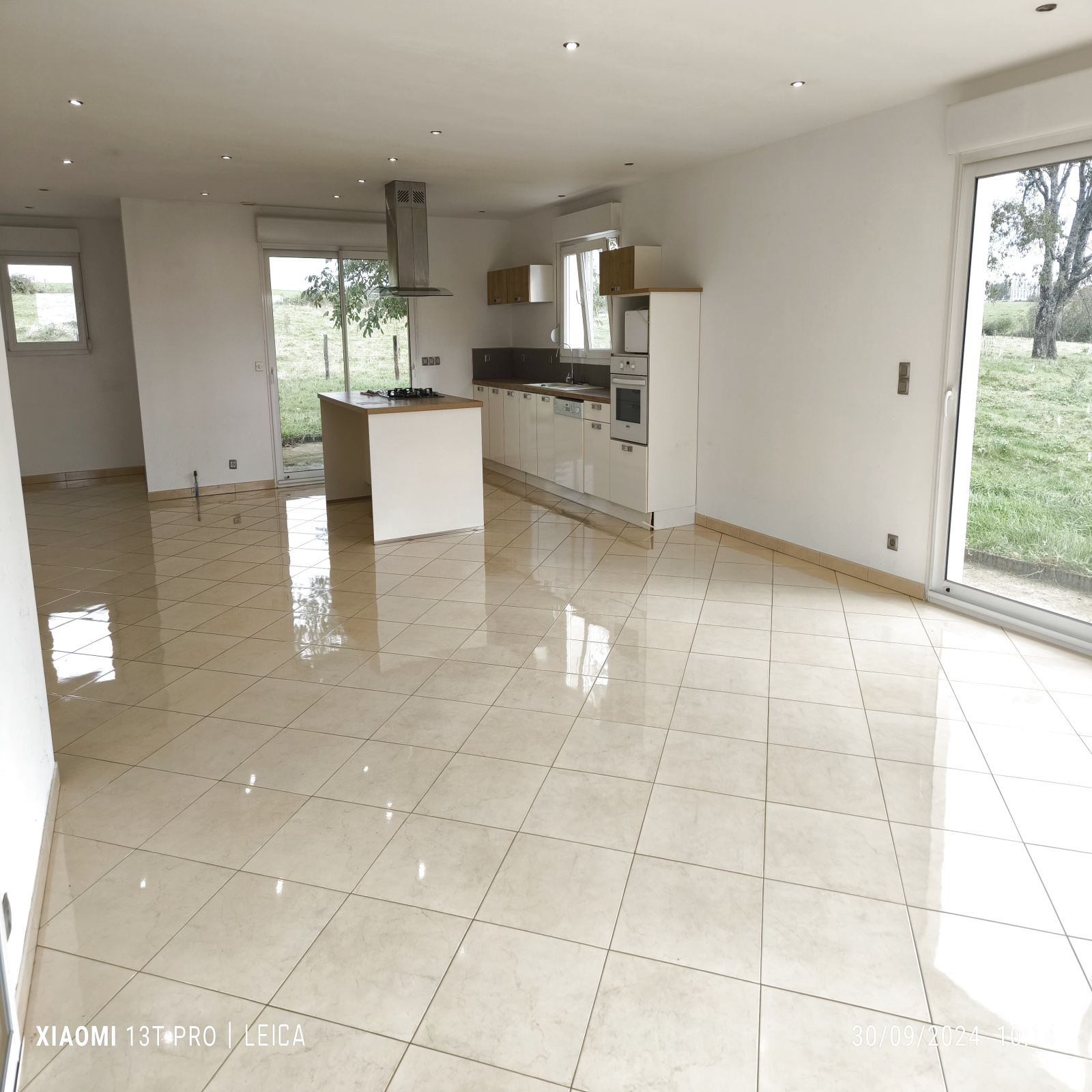 Une entrée sur cuisine équipée / séjour (64 m2 env), dégagement (6 m2 env), 3 chambres (9, 10, 11 m2 env), salle de bains avec douche (10 m2 env), wc.