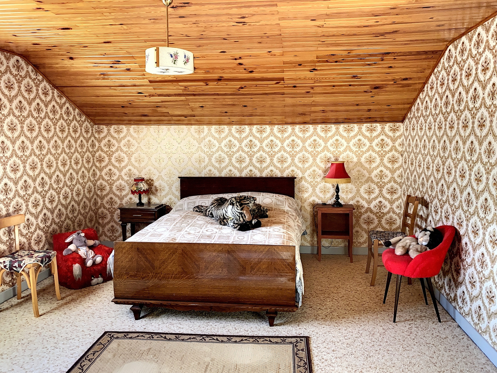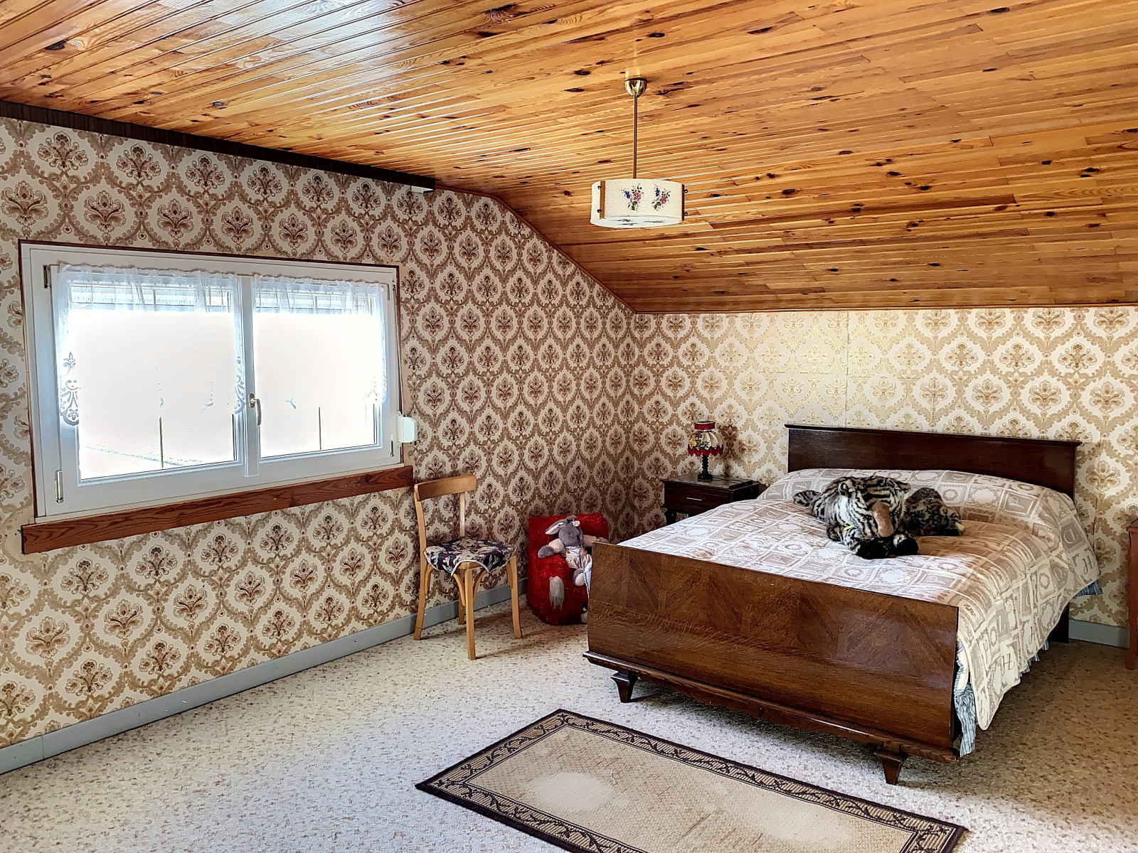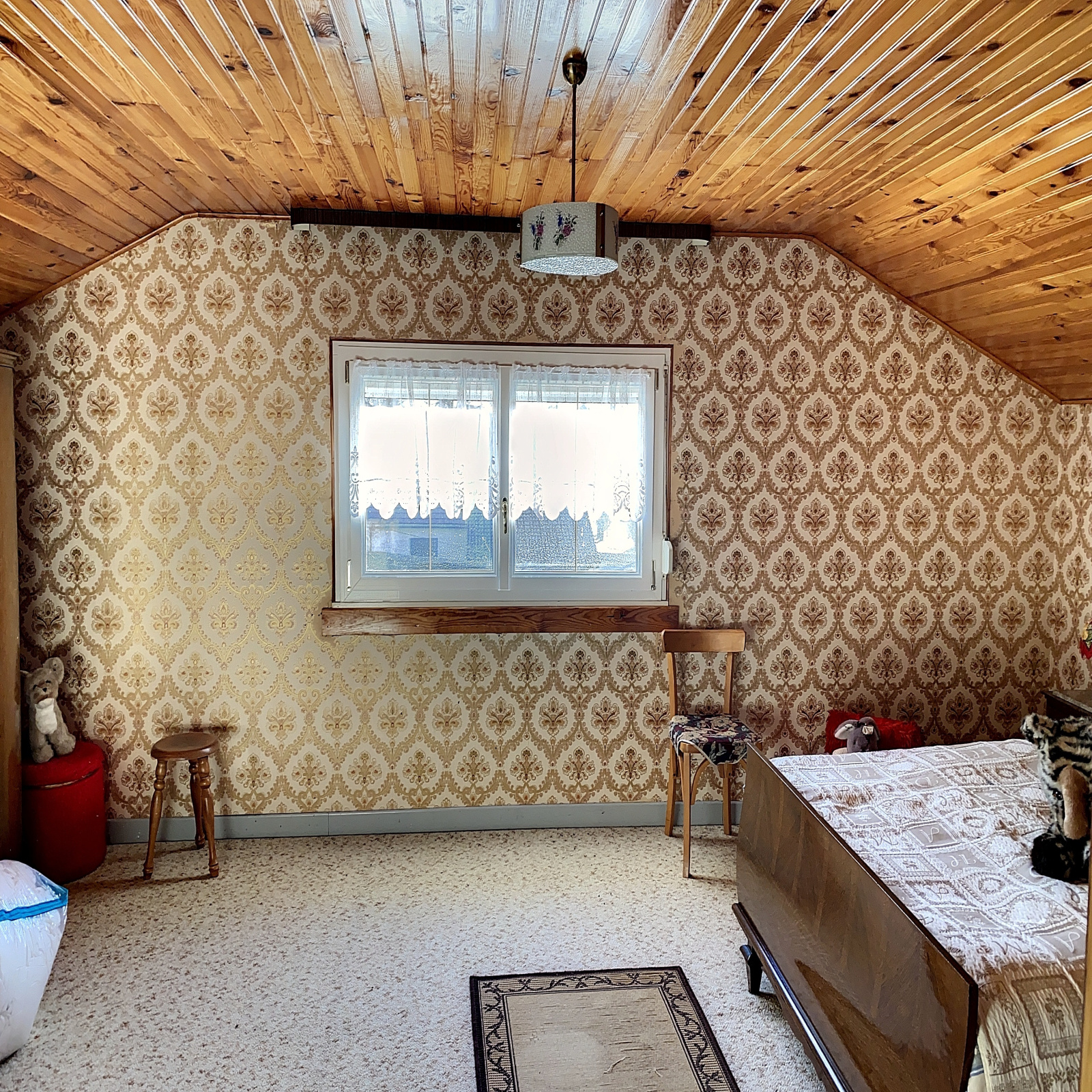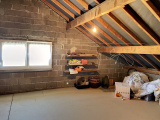 A l'étage : chambre mansardée (16 m2 env), grenier aménageable mansardé (45 m2 env).