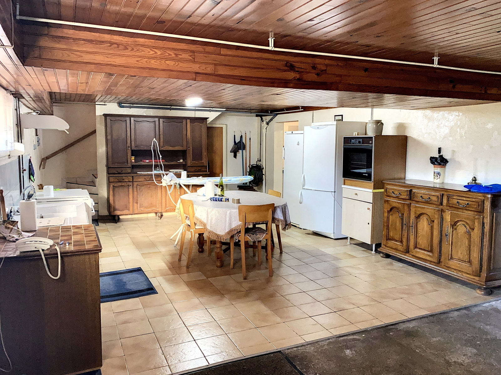 Sous-sol : garage (26 m2 env) avec cuve à fuel, cuisine d'été (24 m2 env), une chambre (15 m2 env), cellier (10 m2 env), chaufferie avec chaudière fuel (23 m2 env).