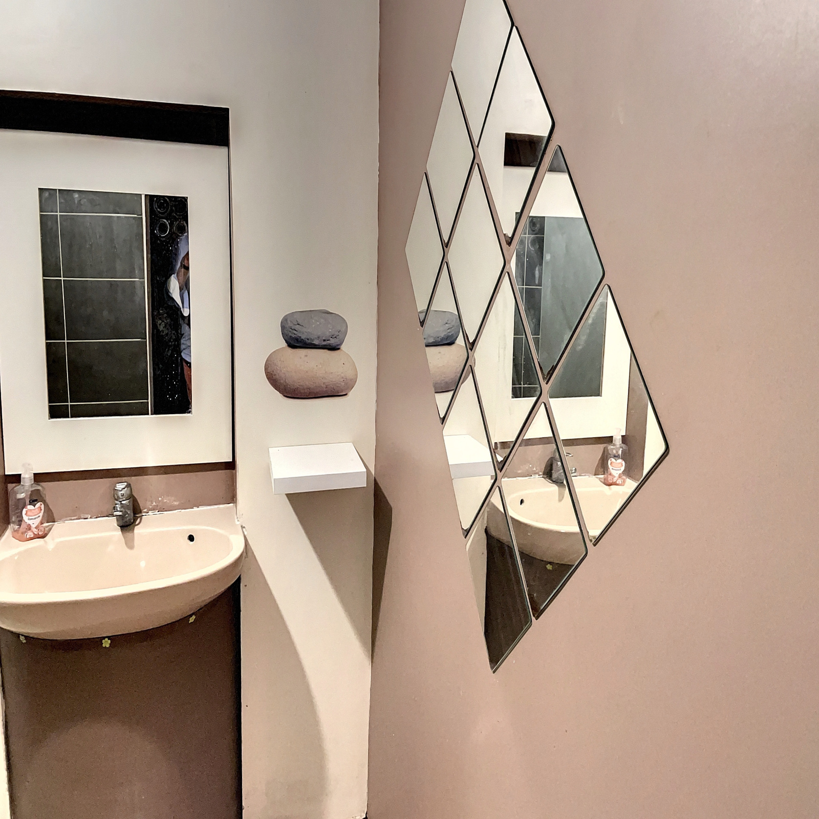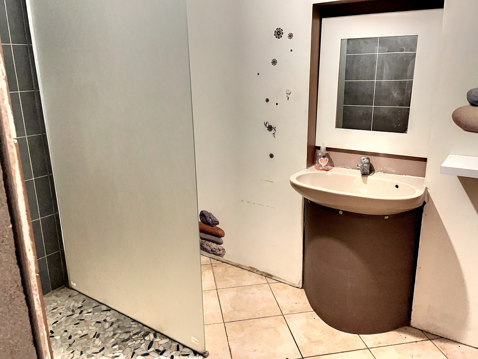 A l'étage : grande mezzanine, 2 grandes chambres, salle de bains.