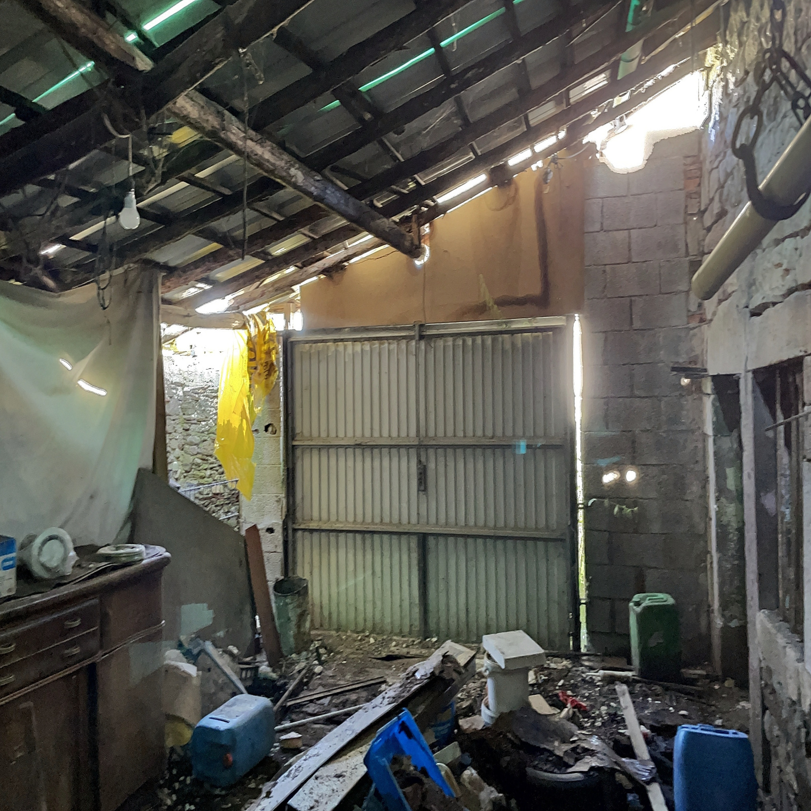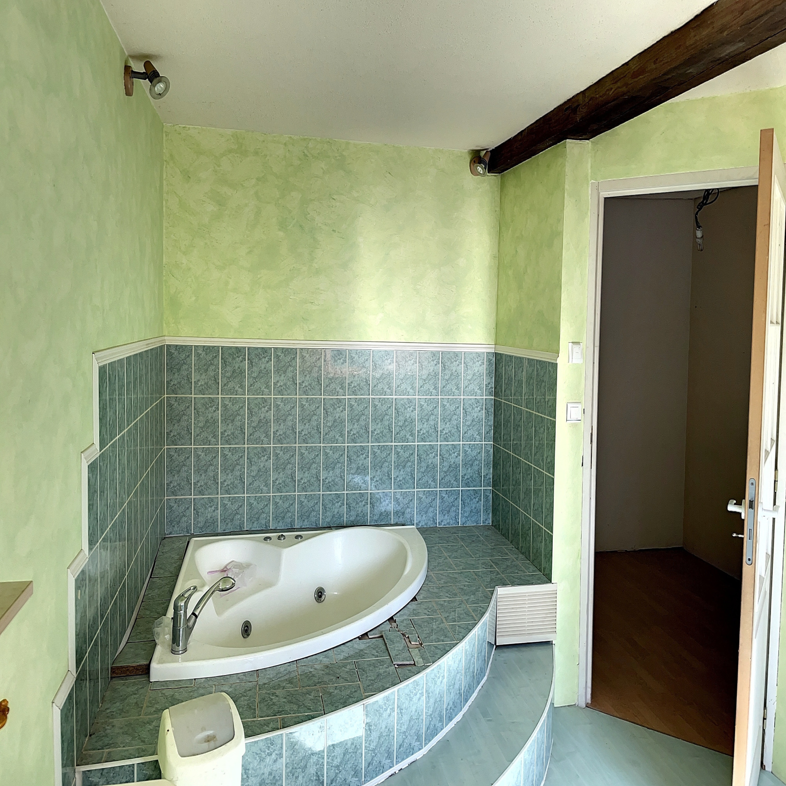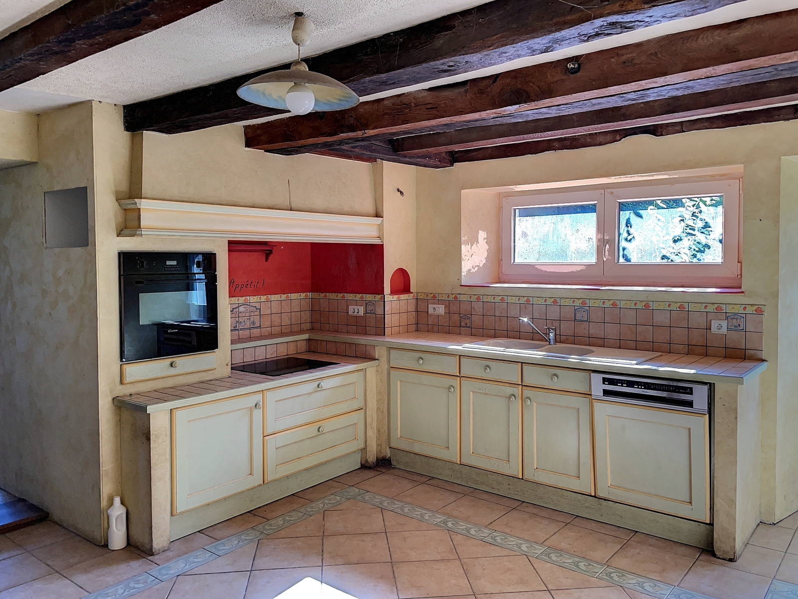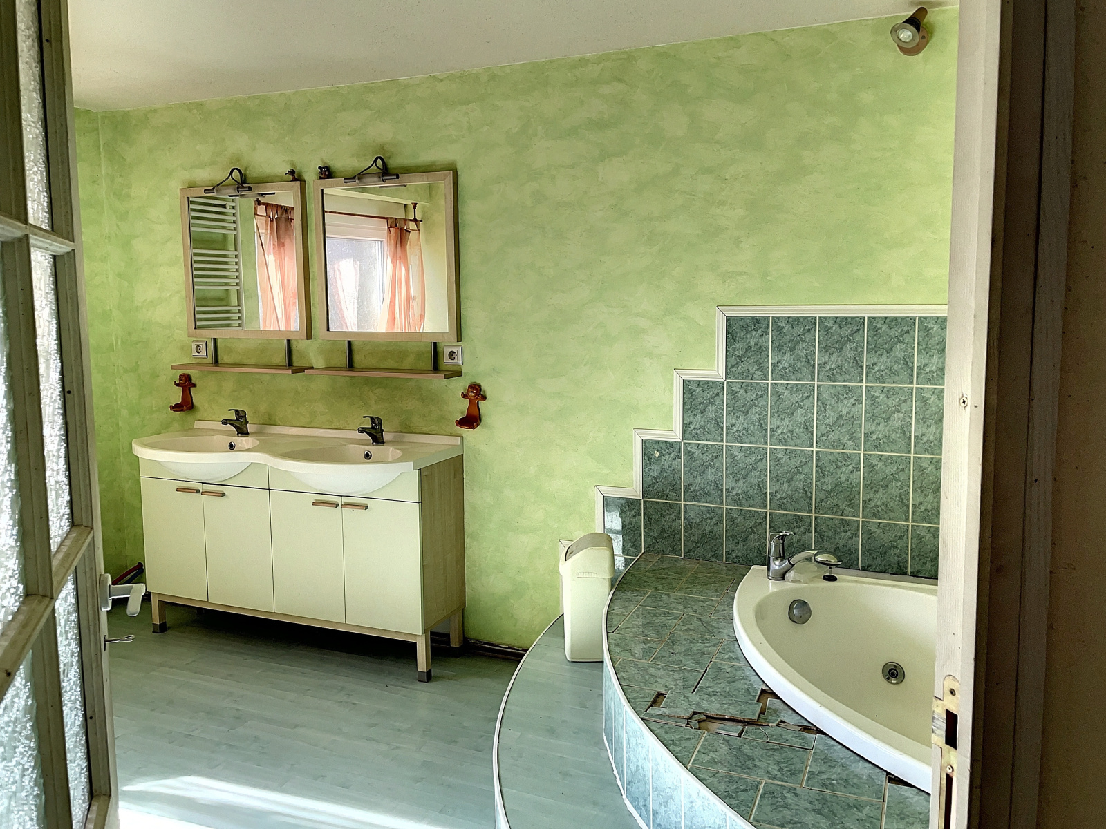 Au rez-de-chaussée : entrée, cuisine, salle à manger (40 m² env), salon avec accès terrasse, une chambre à rénover, salle d'eau, wc.