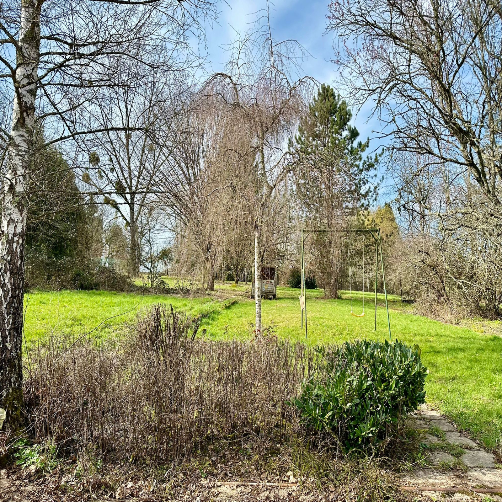 Un beau terrain plat, arboré et sans vis-à-vis d'environ 70 ares, Terrasse couverte coté jardin. Une 2ème terrasse sur le devant de la maison.