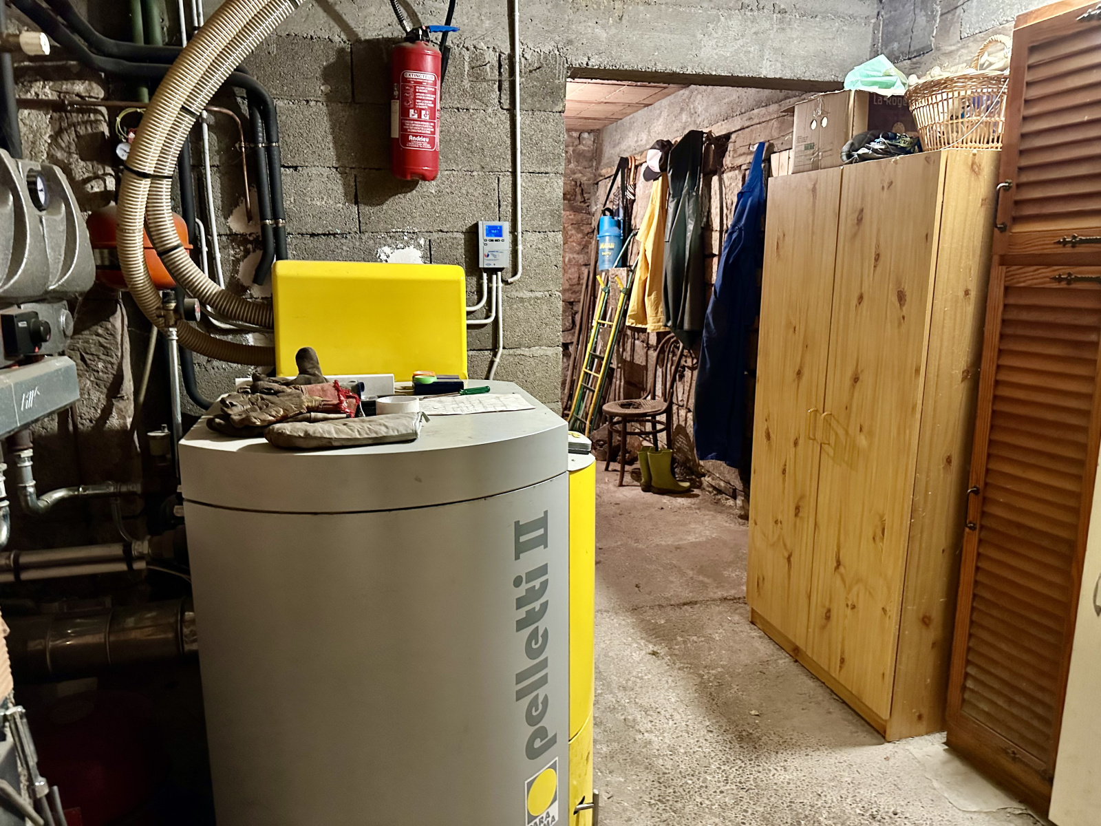 Chauffage central pellet (silo 4 tonnes). Chauffe-eau solaire, panneaux sur le toit. Tout à l'égout.