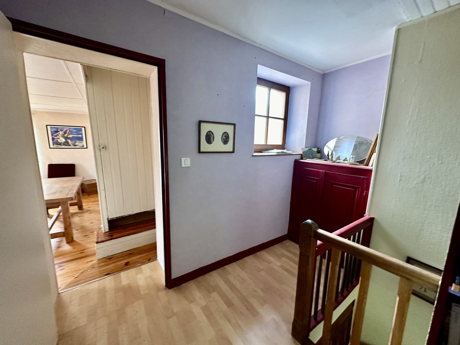 Au 1er étage : une mezzanine desservant 4 chambres dont 2 avec placards, salle de bains avec douche, et un wc indépendant.