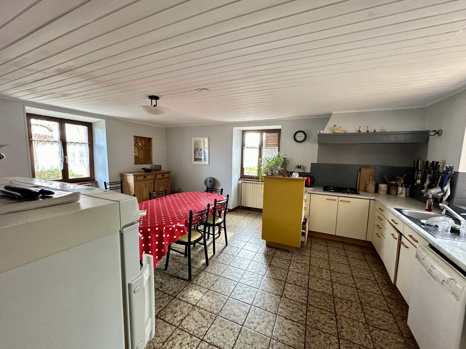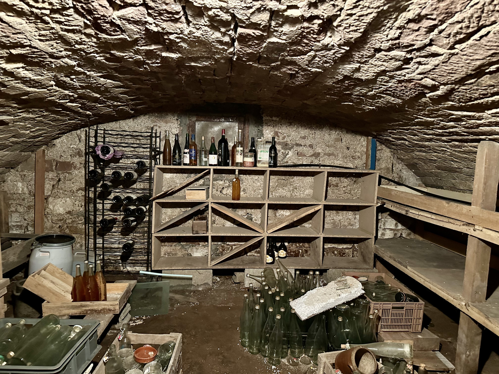 Au rez-de-chaussée : entrée/dégagement desservant un salon avec poêle à bois, une spacieuse cuisine équipée, un séjour lumineux avec une grande baie vitrée voutée, une chambre (possibilité de créer une salle d'eau pour suite sarentale ), wc, cave voutée (au même niveau), buanderie, chaufferie, une autre cave et un garage.