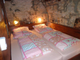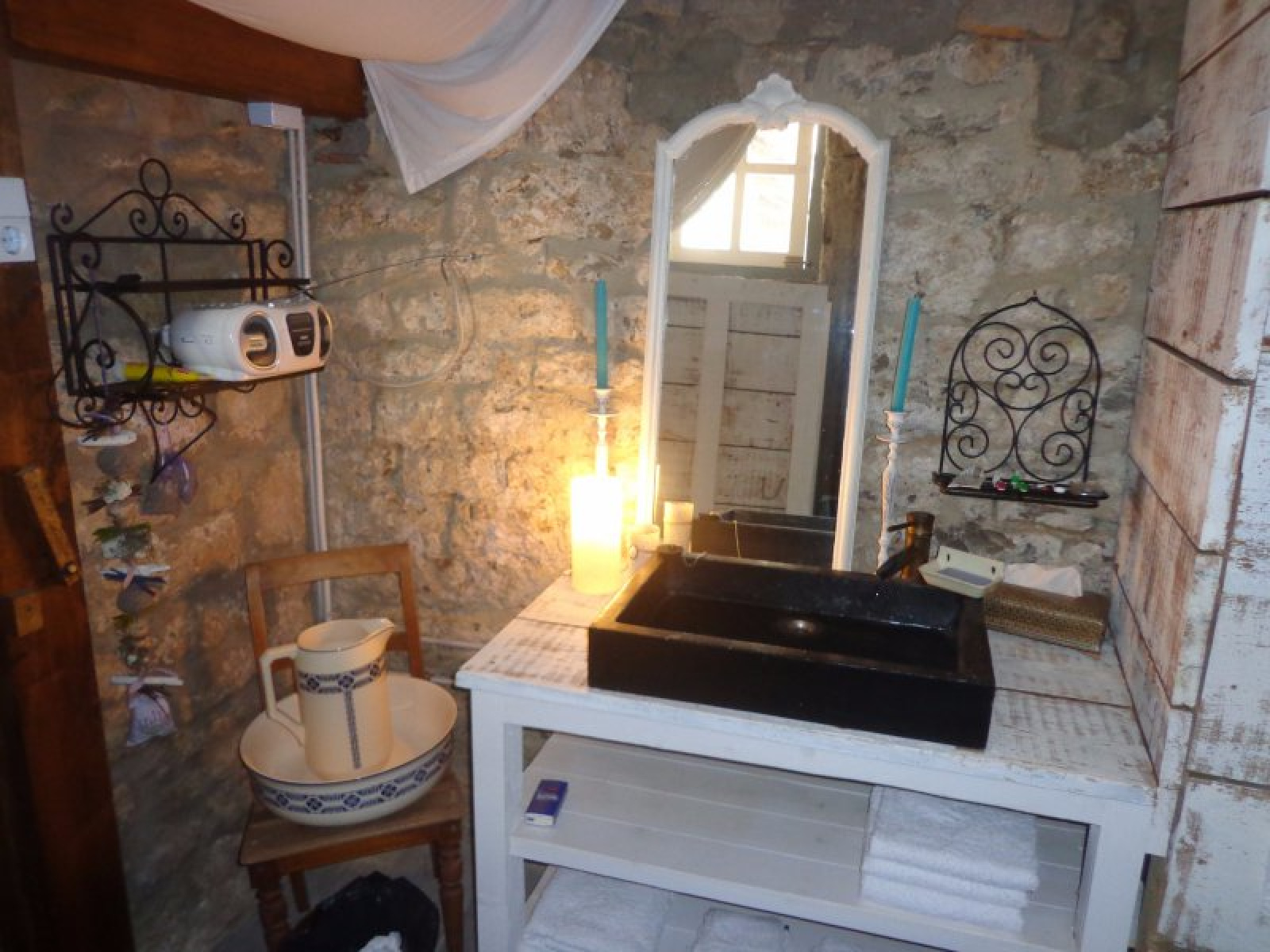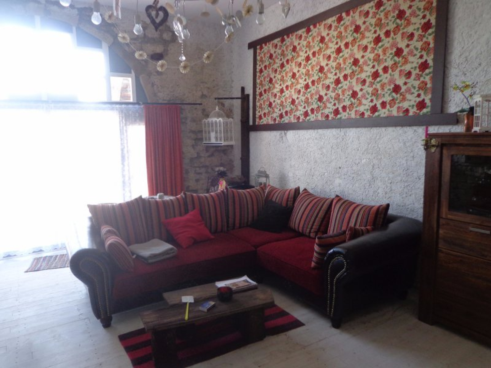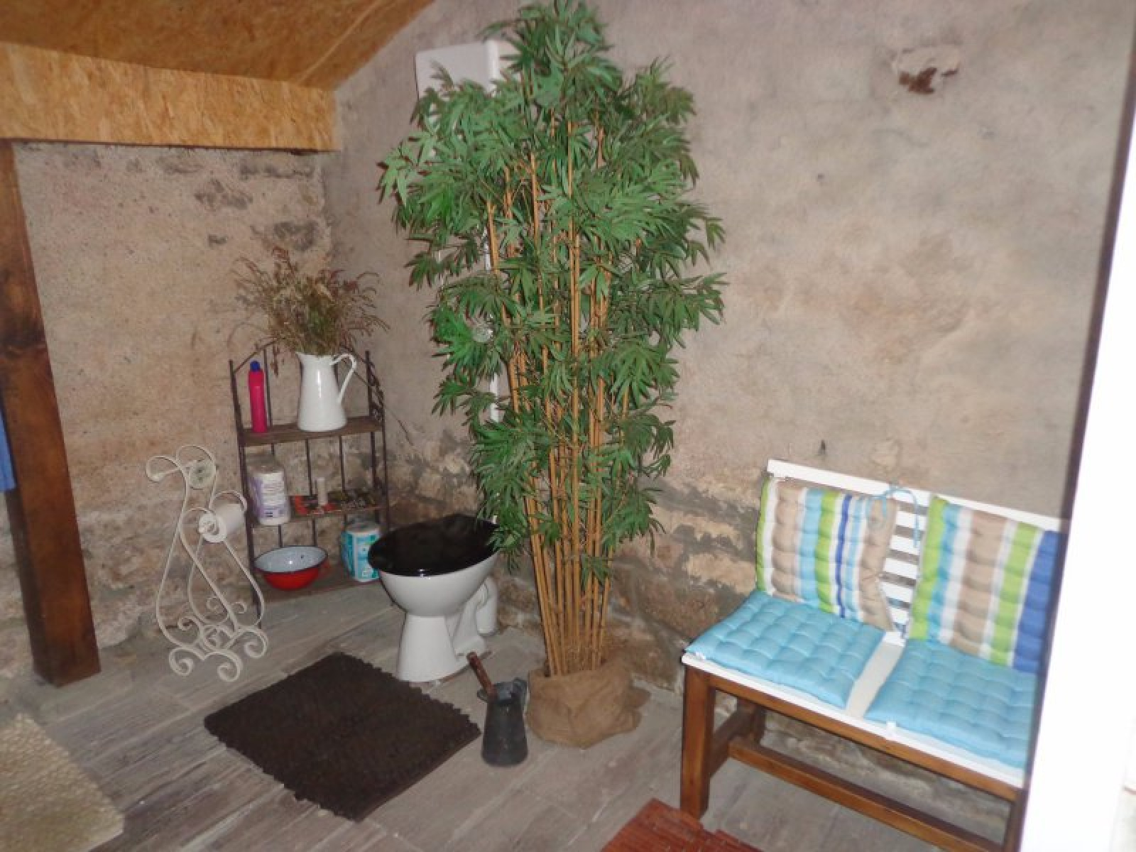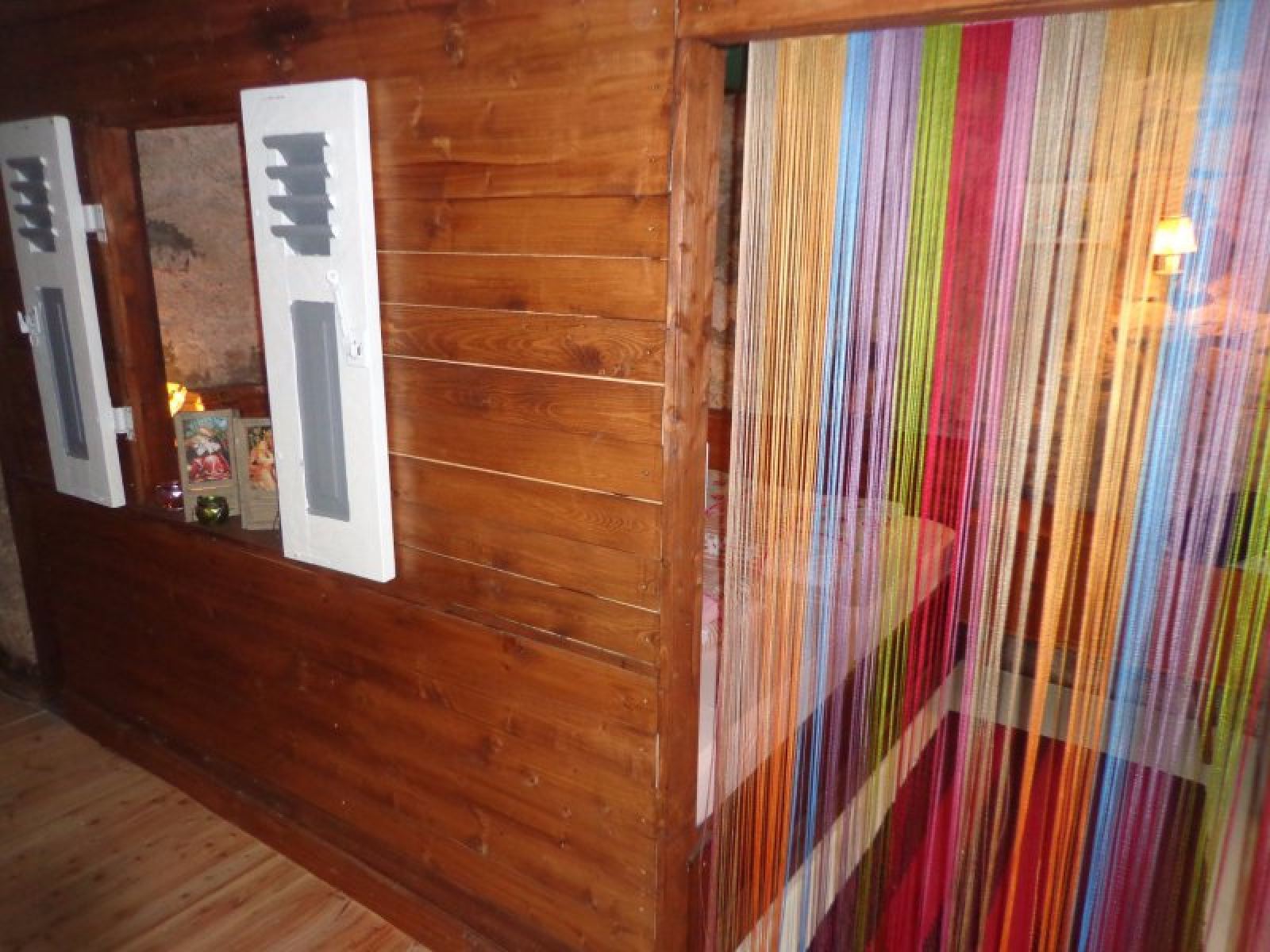 Au rez-de-chaussée : entrée sur cuisien avec poêle à bois, salle à manger avec accès extérieur, salon, coin repos (chambre), salle d'eau avec wc, coin atelier.