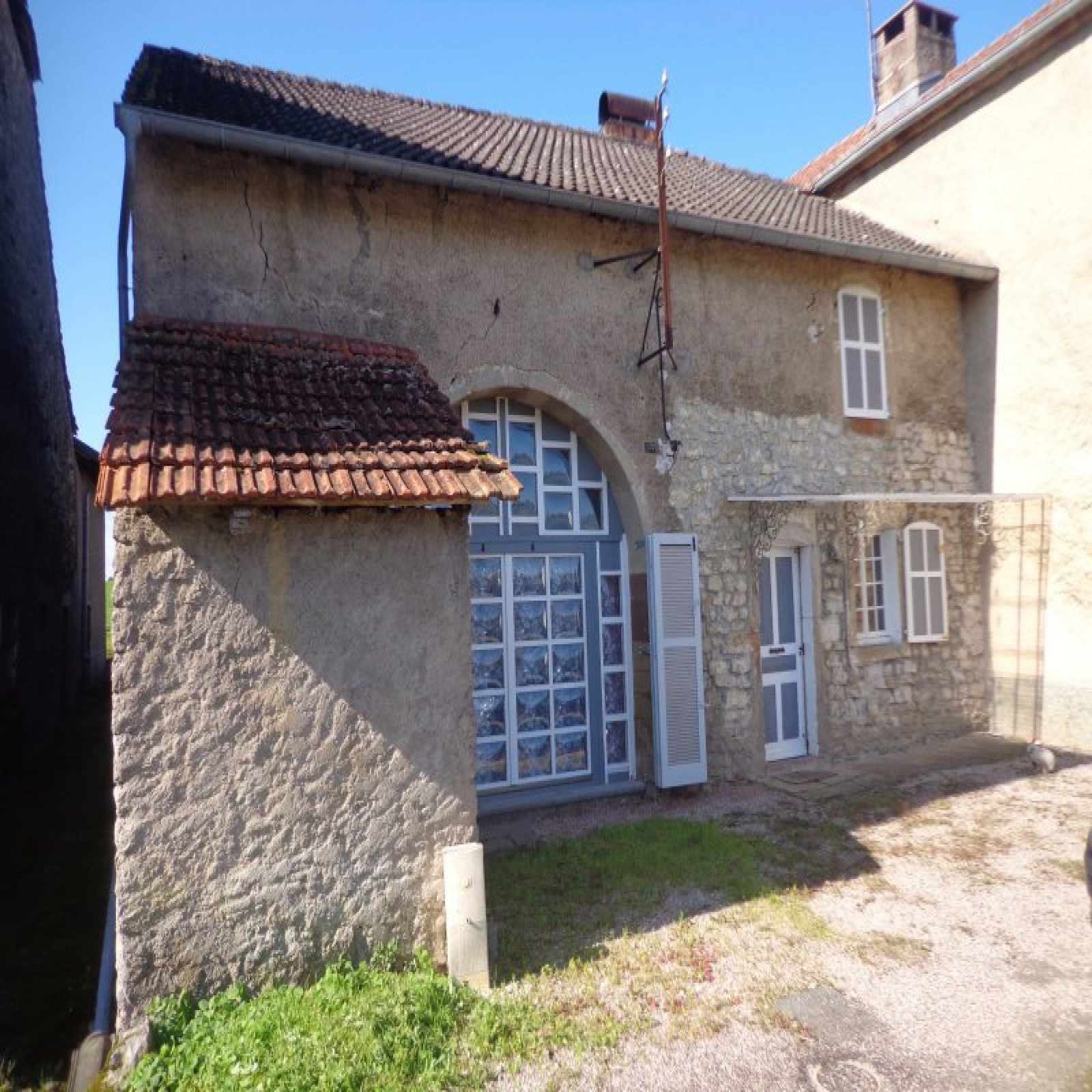 Maison de village, mitoyenne d'un côté, sur terrain de 713 m² environ comprenant :