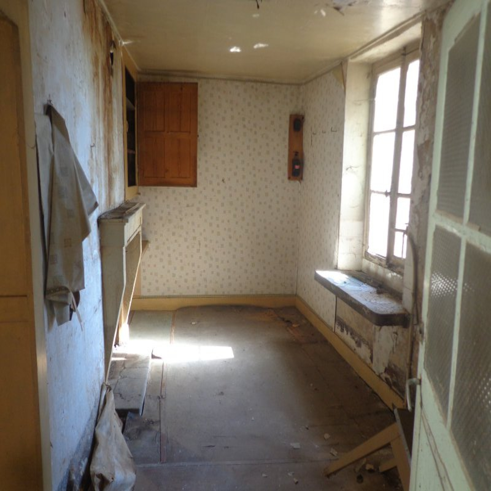 A l'étage : une ancienne cuisine, 2 pièces .