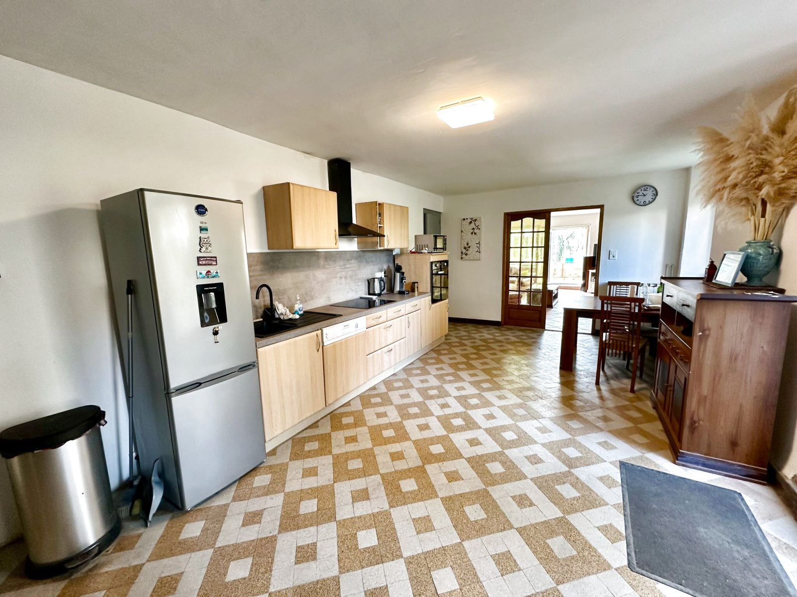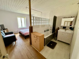 Au rez-de-chaussée : cuisine (29 m2 env) avec poêle à granulés, salon (24 m2 env) avec véranda (6 ml2 env), wc, salle d'eau (3,5 m2 env), salle à manger (22 m2 env), une chambre (27 m2 env).