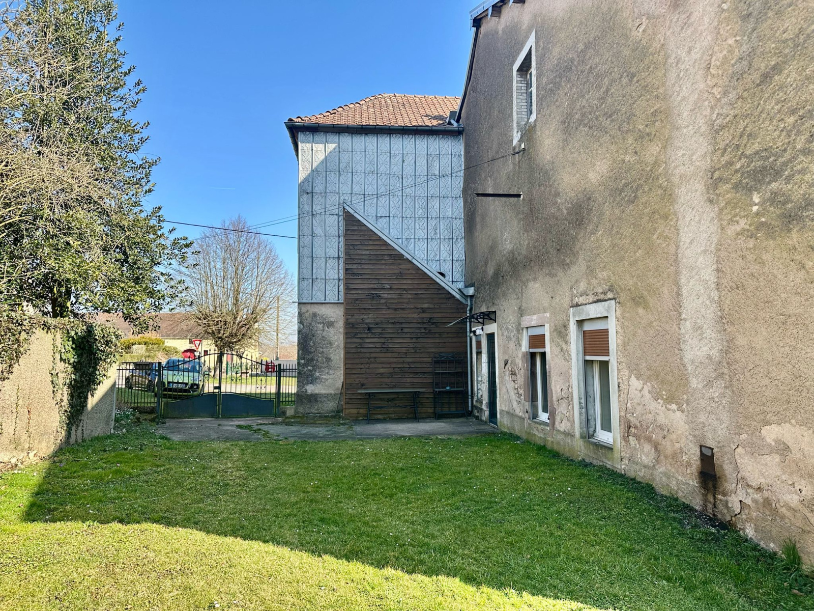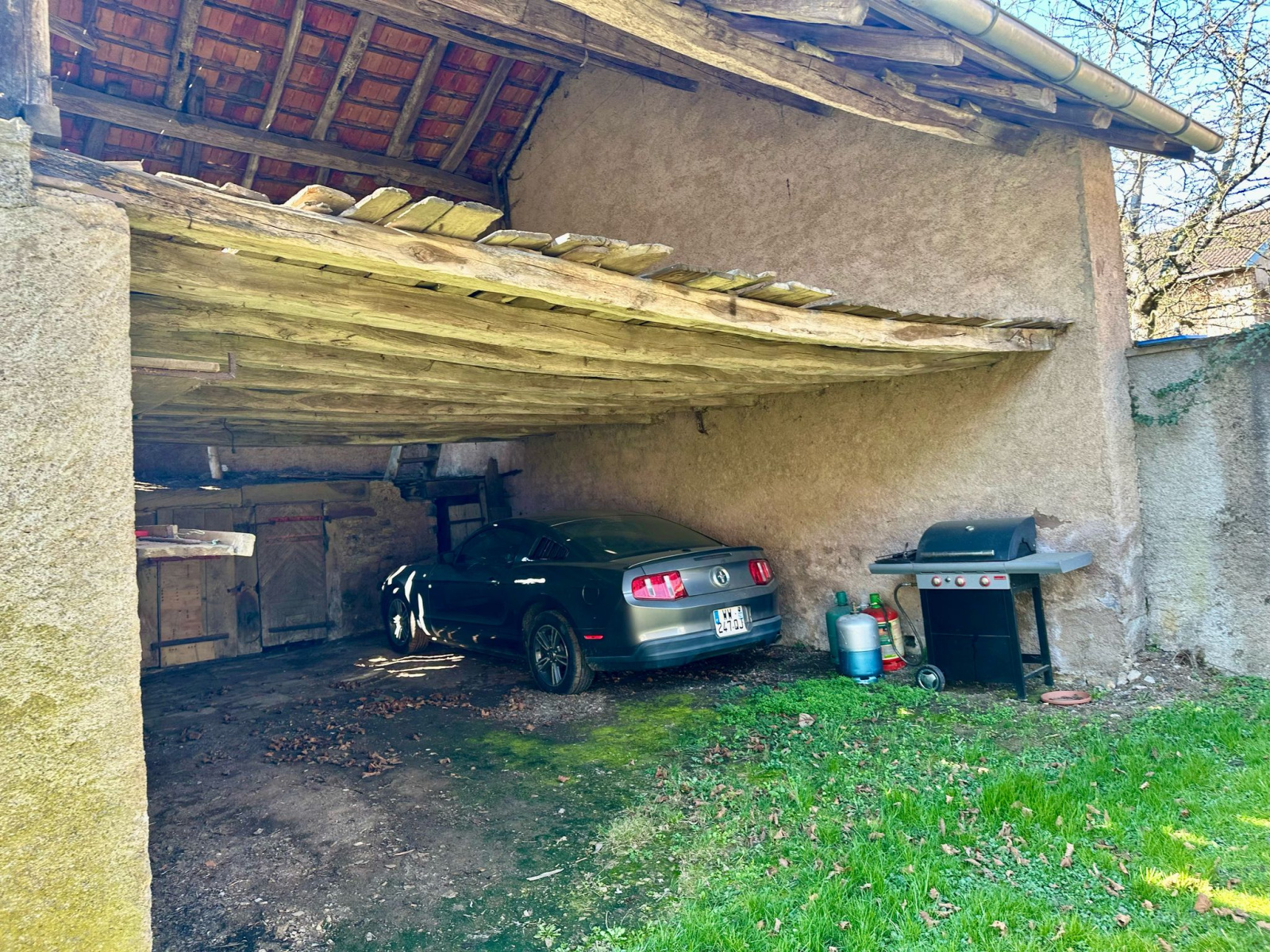 Un bâtiment pouvant servir de garage avec appentis et remise.