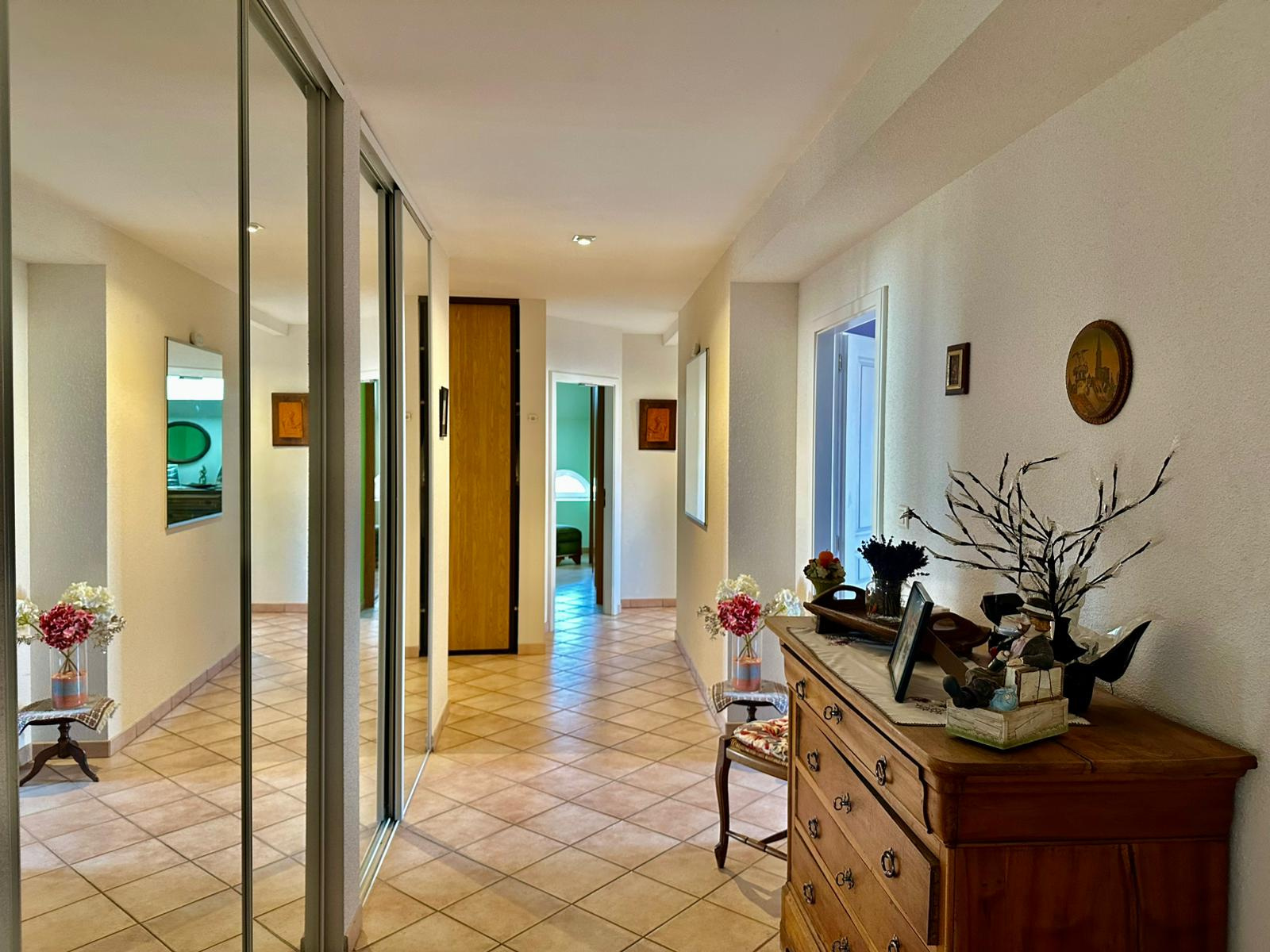Au rez-de-chaussée : entrée aménagée (16 m² env), salle à manger (18 m² env), cuisine équipée (15 m² env), salle d’eau (6 m² env), toilettes, 2ème cuisine dans véranda (17 m² rnv), grand hall avec accès étage, accès cave, séjour (58 m² env).